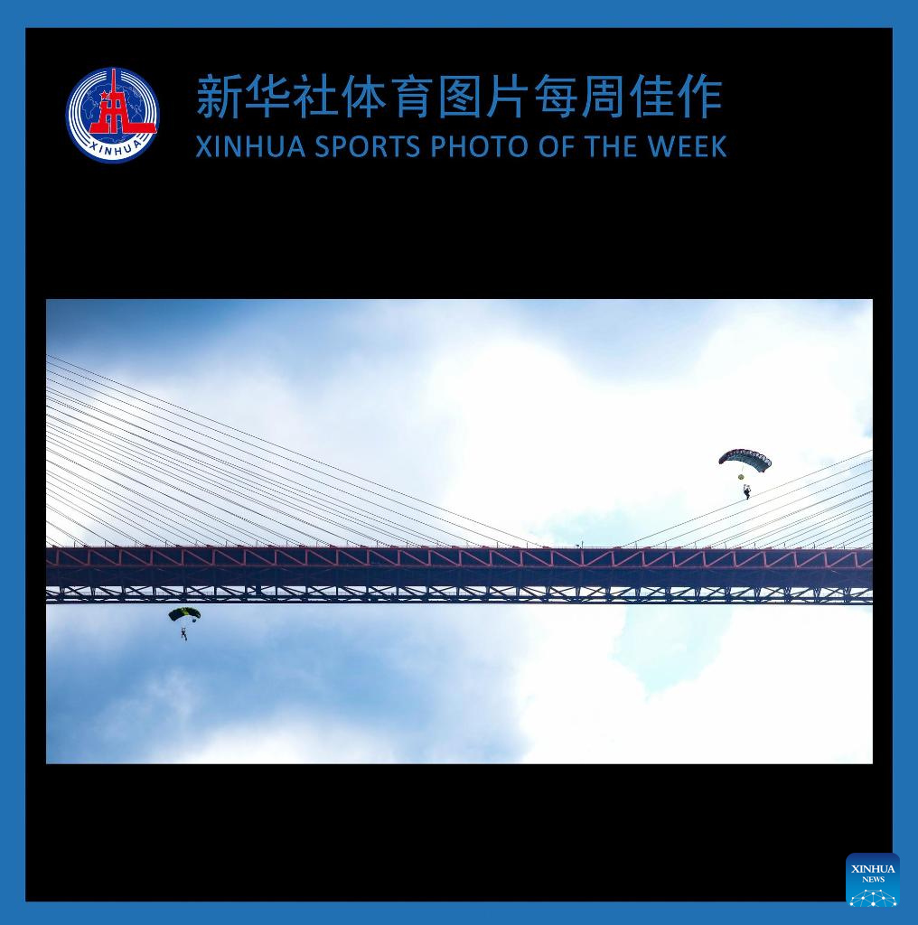 Sky divers take part in the 2024 International High Bridge Extreme Sports Invitational Tournament in Liupanshui, southwest China's Guizhou Province, Sept. 22, 2024. (Xinhua/Tao Liang)