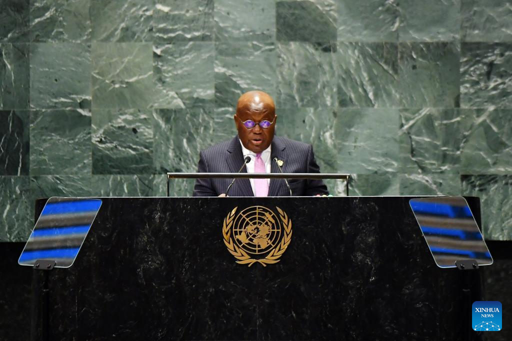 Nana Addo Dankwa Akufo-Addo, president of Ghana, speaks during the Summit of the Future at the UN headquarters in New York, on Sept. 22, 2024.