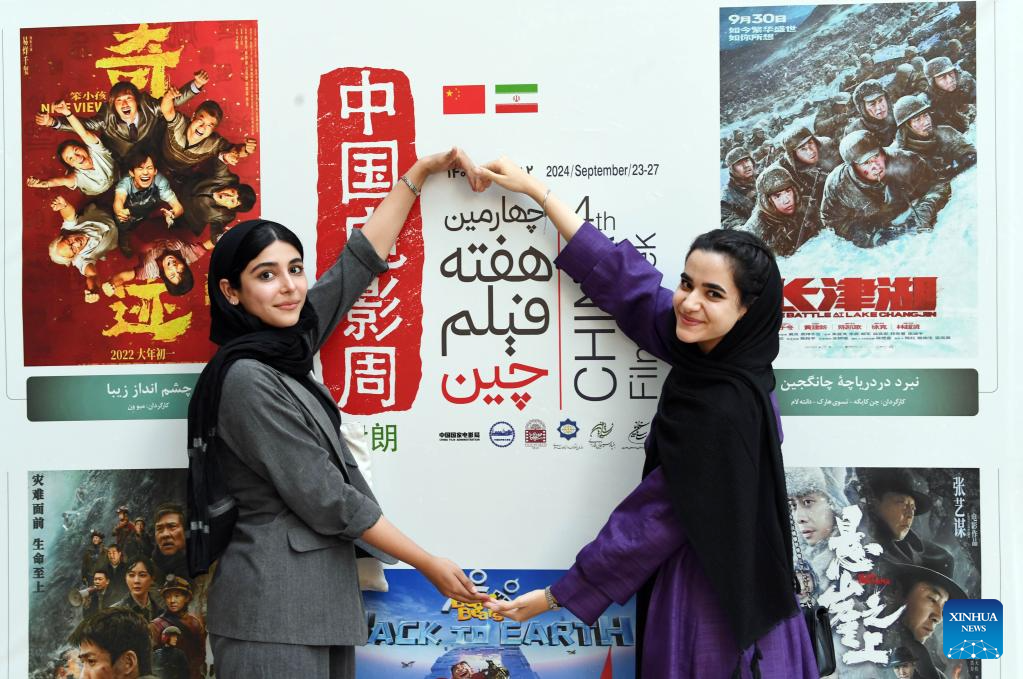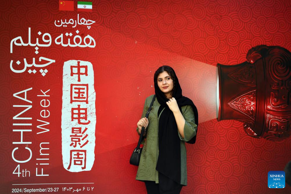 A local woman attends the opening of the 4th Chinese Movie Week in Tehran, Iran, Sept. 23, 2024. The event kicked off here on Monday, attracting over 300 attendees, including officials, movie industry professionals, and media representatives from both countries.