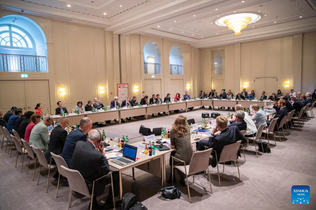 Liu Jianchao, head of the International Department of the Communist Party of China (CPC) Central Committee, attends the 186th Bergedorf Round Table in Berlin, Germany, Sept. 24, 2024. Liu led a CPC delegation on a visit to Germany from Sept. 22 to 25. (Xinhua/Zhang Fan)
