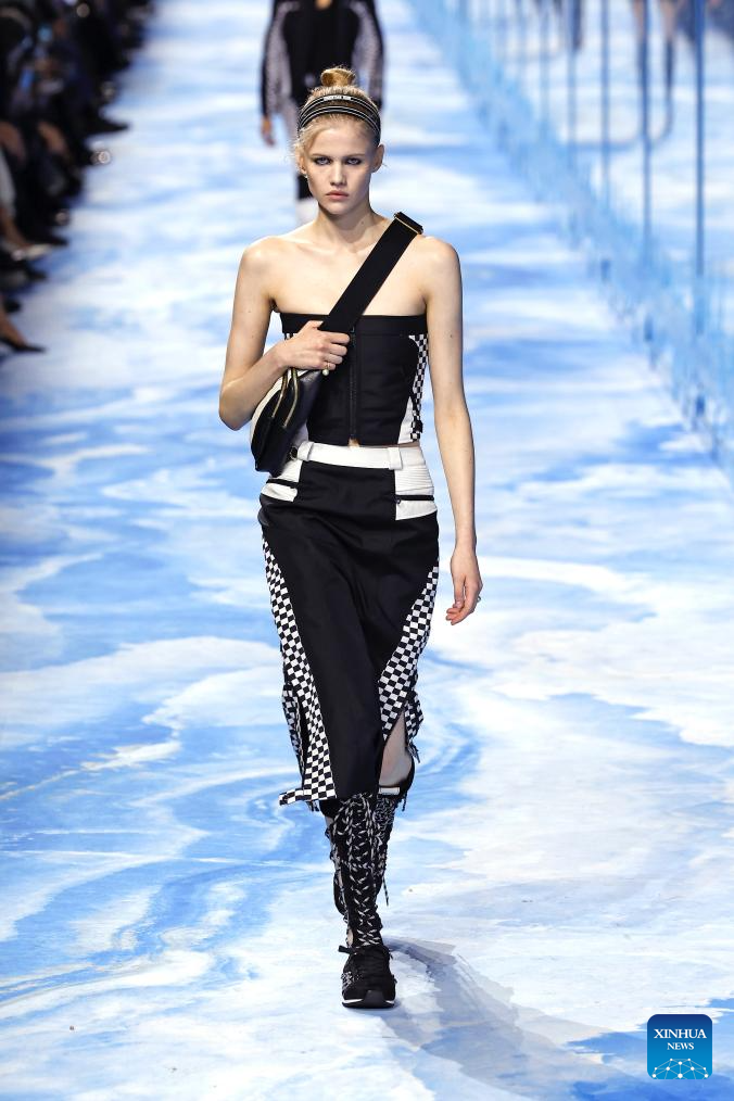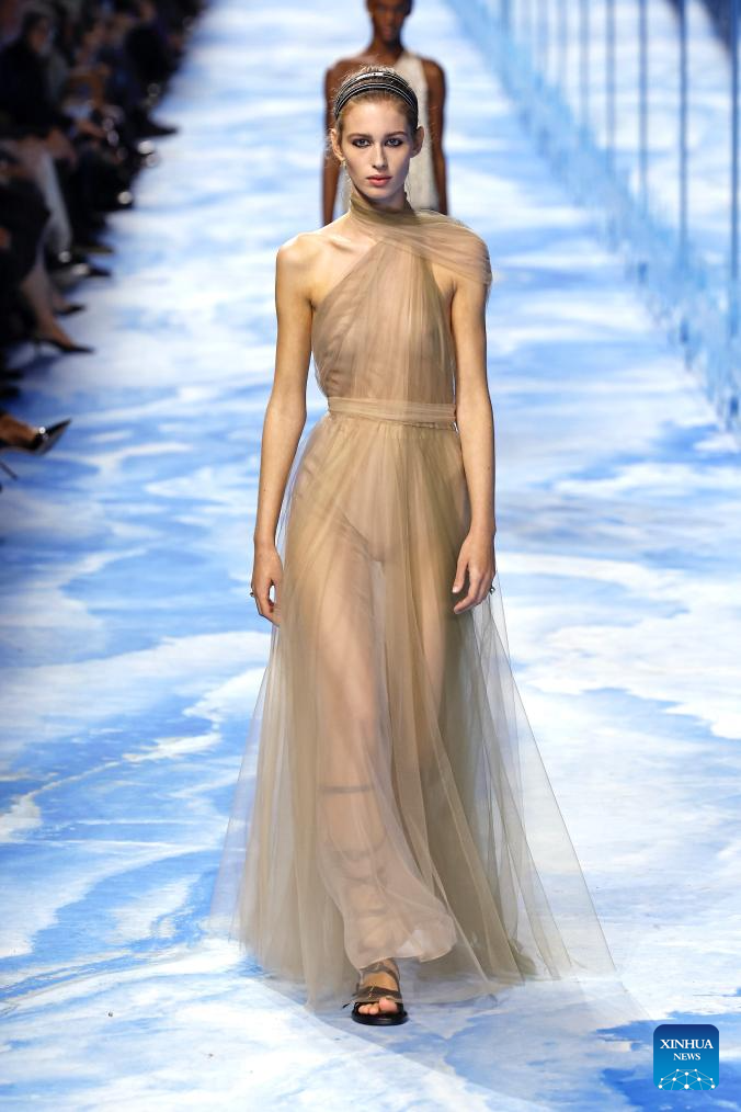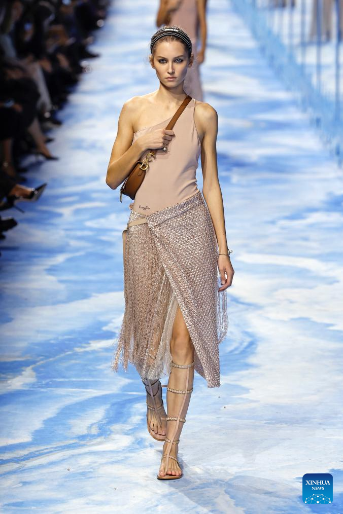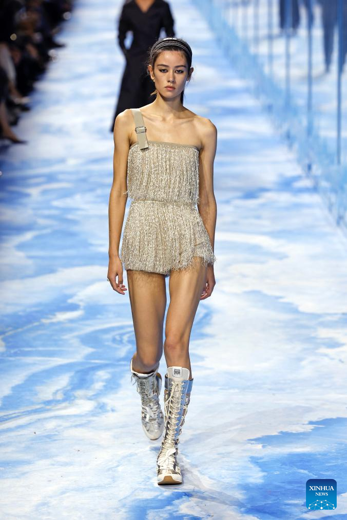A model presents a creation from the Spring/Summer 2025 ready-to-wear collections by French fashion house Christian Dior during the Paris Fashion Week, in Paris, France, Sep. 24, 2024. (MeetEurope/Handout via Xinhua)
