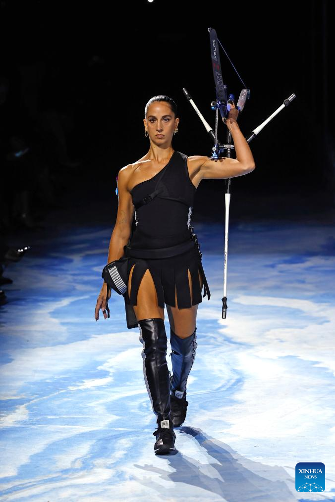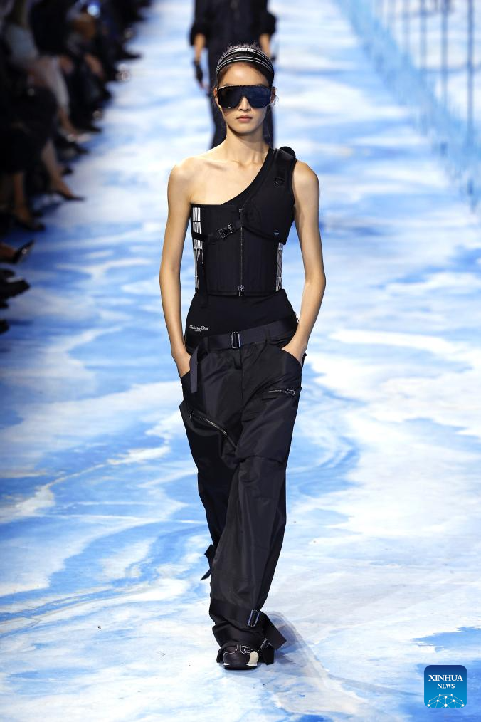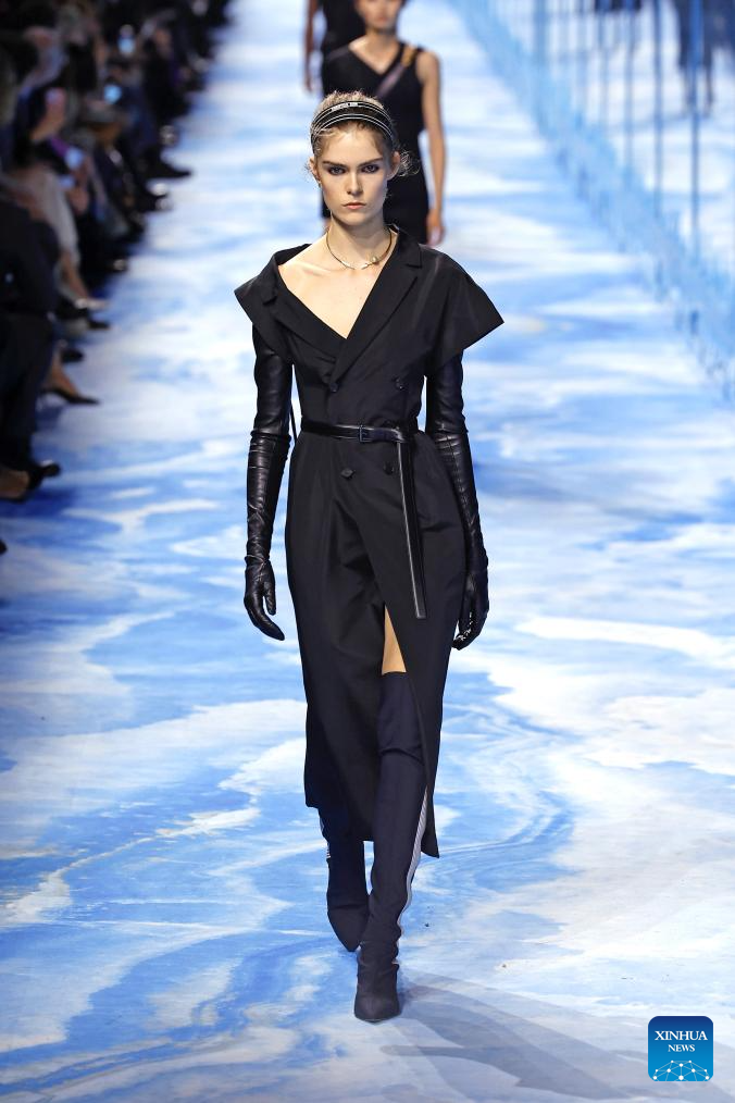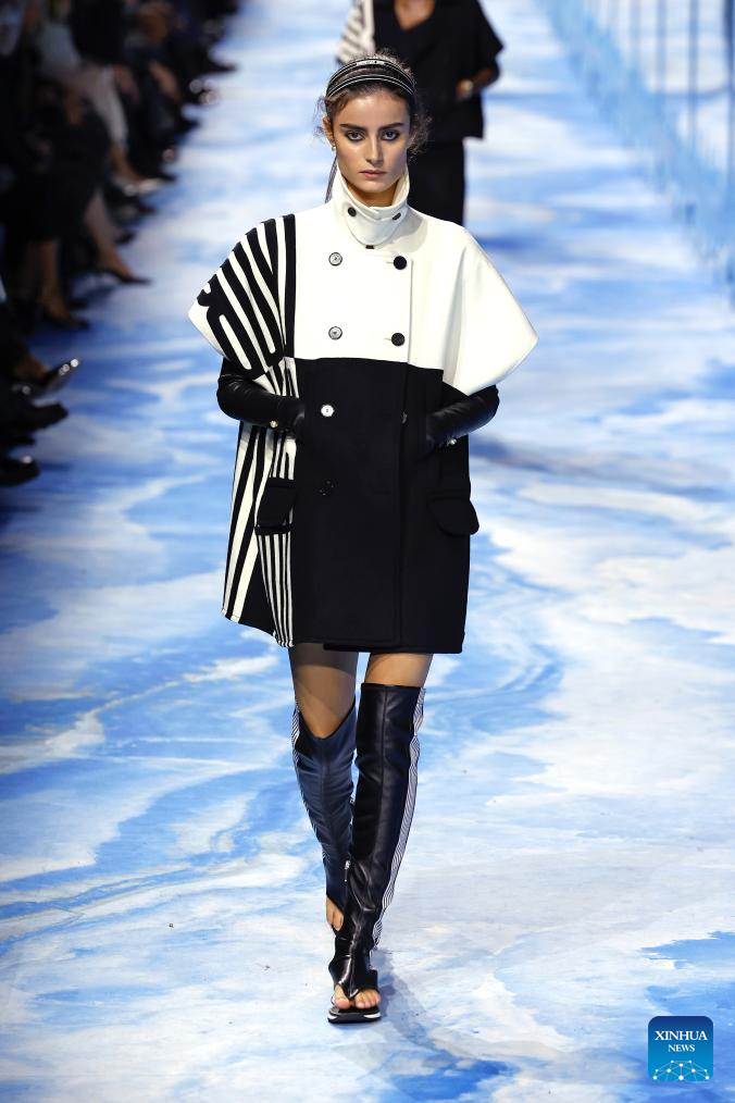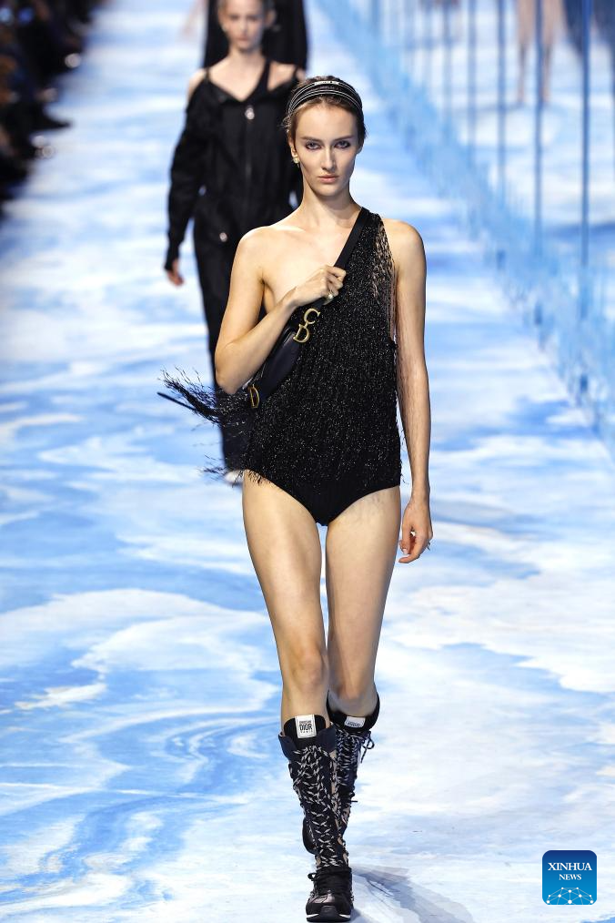 A model presents a creation from the Spring/Summer 2025 ready-to-wear collections by French fashion house Christian Dior during the Paris Fashion Week, in Paris, France, Sep. 24, 2024. (MeetEurope/Handout via Xinhua)