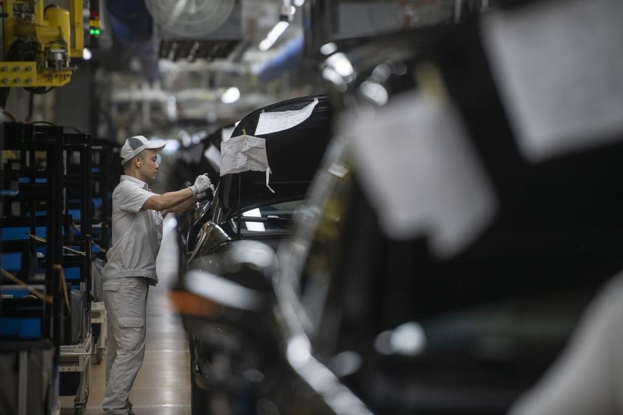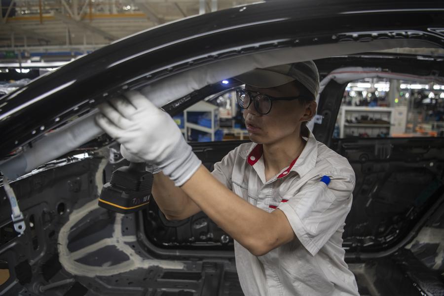 A worker installs curtain airbags to a vehicle at an assembly line in Wuhan, central China's Hubei Province, Sept. 6, 2024. (Xinhua/Wu Zhizun)A worker carries motors of electric vehicles at an assembly line in Wuhan, central China's Hubei Province, Sept. 6, 2024. (Xinhua/Wu Zhizun)A worker works at an assembly line in Wuhan, central China's Hubei Province, Sept. 6, 2024. (Xinhua/Hu Jingwen)A worker works at an assembly line in Wuhan, central China's Hubei Province, Sept. 6, 2024. (Xinhua/Wu Zhizun)A worker installs the dashboard to a vehicle at an assembly line in Wuhan, central China's Hubei Province, Sept. 6, 2024. (Xinhua/Wu Zhizun)A worker checks the paint of a new vehicle at an assembly line in Wuhan, central China's Hubei Province, Sept. 6, 2024. (Xinhua/Hu Jingwen)Workers check the function of doors at an assembly line in Wuhan, central China's Hubei Province, Sept. 6, 2024. (Xinhua/Wu Zhizun)