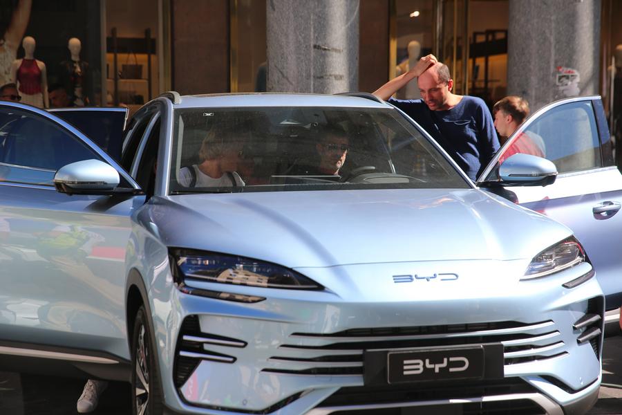 This photo taken on Jan. 15, 2024 shows a maiden voyage ceremony for vehicle carrier vessel "BYD EXPLORER NO.1" held at Xiaomo International Logistics Port in Shenzhen, south China's Guangdong Province. (Xinhua)Visitors view an electric vehicle of Chery from China during the Festival of Motoring in Johannesburg, South Africa, Aug. 30, 2024. (Xinhua/Zhang Yudong)This photo taken on April 25, 2024 shows a new energy vehicle (NEV) produced by BYD, China's leading NEV manufacturer, at a plant of BYD in Zhengzhou, central China's Henan Province. (Xinhua/Li Jianan)A visitor takes clips at the booth of Chinese carmaker Voyah on the 2024 Turin Auto Show in Turin, Italy, Sept. 13, 2024. (Xinhua/Li Jing)People visit the booth of Chinese carmaker BYD on the 2024 Turin Auto Show in Turin, Italy, Sept. 13, 2024. (Xinhua/Li Jing)A boy visits the booth of Chinese carmaker Chery on the 2024 Turin Auto Show in Turin, Italy, Sept. 13, 2024. (Xinhua/Li Jing)■