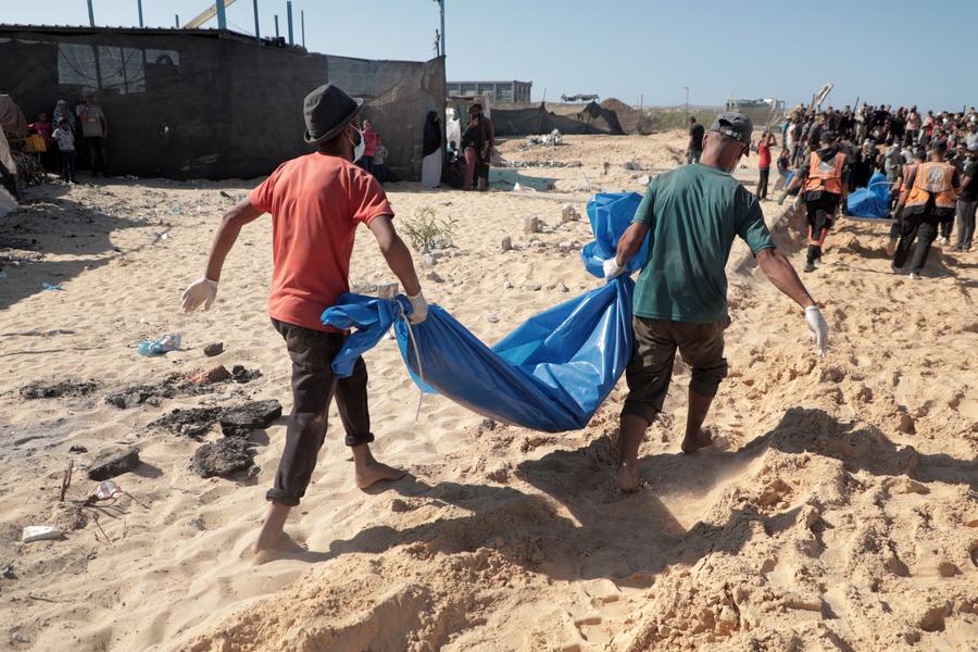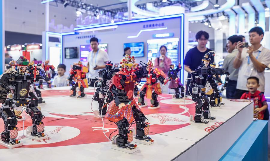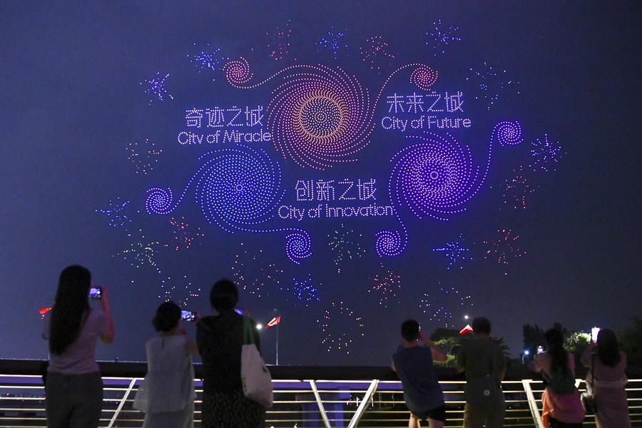 A visitor poses for photos at a photo exhibition on China's historic transformation held by Xinhua News Agency in Beijing, capital of China, Sept. 26, 2024. China's national news agency, Xinhua, on Thursday opened a photo exhibition documenting the historic transformation of the country over the past decades. The exhibition opened at the National Financial Information Center in Beijing just days before Oct. 1, when the People's Republic of China marks its 75th founding anniversary. On display are nearly 500 photographs spanning various historical periods, selected from Xinhua's collection of over 10 million images, the largest photo archive in the country. (Xinhua/Zhang Yuwei)A guide introduces exhibits at a photo exhibition on China's historic transformation held by Xinhua News Agency in Beijing, capital of China, Sept. 26, 2024. China's national news agency, Xinhua, on Thursday opened a photo exhibition documenting the historic transformation of the country over the past decades. The exhibition opened at the National Financial Information Center in Beijing just days before Oct. 1, when the People's Republic of China marks its 75th founding anniversary. On display are nearly 500 photographs spanning various historical periods, selected from Xinhua's collection of over 10 million images, the largest photo archive in the country. (Xinhua/Bai Xuefei)This photo taken on Sept. 25, 2024 shows the newly installed first test prototype of the Core Array of China's Five-hundred-meter Aperture Spherical Radio Telescope under the starry sky in southwest China's Guizhou Province. Wednesday marks the eighth anniversary of the launch of China's Five-hundred-meter Aperture Spherical Radio Telescope (FAST). On the same day, the construction of the Core Array of FAST started, highlighting China's growing potential in global radio astronomy research. (Xinhua/Liu Xu)Robots perform dance at a booth during the third Global Digital Trade Expo in Hangzhou, east China's Zhejiang Province, Sept. 25, 2024. The third Global Digital Trade Expo opened in Hangzhou on Wednesday, showcasing the latest technological innovations and business development of the digital economy sector. (Xinhua/Xu Yu)An aerial drone photo taken on Sept. 26, 2024 shows kids jointly creating a painting commemorating the upcoming 75th anniversary of the founding of the People's Republic of China at a kindergarten in Tonggu County of Yichun City, east China's Jiangxi Province. (Photo by Zhou Liang/Xinhua)Children run with blessing signs in hand at a kindergarten in Xinghua City, east China's Jiangsu Province, Sept. 26, 2024. Various activities are held at kindergartens and primary schools across the country to welcome the upcoming 75th anniversary of the founding of the People's Republic of China. (Photo by Zhou Shegen/Xinhua)Lu Jianying, an inheritor of Suzhou embroidery, embroiders an intricate image of leaves at a Suzhou embroidery training studio in Suzhou, east China's Jiangsu Province, Sept. 25, 2024. Born to a family specializing in the Suzhou embroidery craft, Lu began learning basic embroidery skills from her grandmother when she was eight, and has now been making embroidery for more than 30 years. Lu brings animals and flowers to life with her exquisite needlework, and she has also made a name for herself by turning ancient Chinese paintings into pieces of embroidery. Many of her works have been included in museum and gallery collections. (Xinhua/Xia Peng)Giant panda An An is unloaded from the plane at the Hong Kong International Airport in Hong Kong, south China, Sept. 26, 2024. A pair of giant pandas gifted by the central government to the Hong Kong Special Administrative Region (HKSAR) of China arrived at the Hong Kong International Airport on Thursday morning. At around 13:00 p.m., the pandas were driven to Ocean Park Hong Kong witnessed by dozens of local fans waving panda-shaped balloons and cardboard cutouts. They will spend time in quarantine and adapt to the new environment before their scheduled public debut in December. The two pandas, named An An and Ke Ke, were both born in June 2019. They are the third pair of giant pandas the HKSAR has received as gifts from the central government. (Xinhua/Zhu Wei)People enjoy a drone show at a park in Shenzhen, south China's Guangdong Province, Sept. 26, 2024. (Xinhua/Liang Xu)A worker is seen busy on top of a salt stack at Daqinghe salt fields in Tangshan, north China's Hebei Province, Sept. 26, 2024. (Photo by Liu Mancang/Xinhua)People transfer unidentified bodies to a grave in the southern Gaza Strip city of Khan Younis, on Sept. 26, 2024. On Wednesday, the Gaza-based health authorities reported receiving about 88 unidentified bodies from the Israeli side, adding the Israeli side did not provide any information about their identities, the locations where they were recovered, or the time of death. (Photo by Rizek Abdeljawad/Xinhua)An aerial photo taken on Sept. 25, 2024 shows a part of Lake Kulu in Konya, Türkiye. Lake Kulu is located some 5 km east of Konya Province's Kulu district. Once a haven for rose flamingos and other migratory birds on their way to Africa, it has already dried up due to groundwater overuse and climate change. (Mustafa Kaya/Handout via Xinhua)■