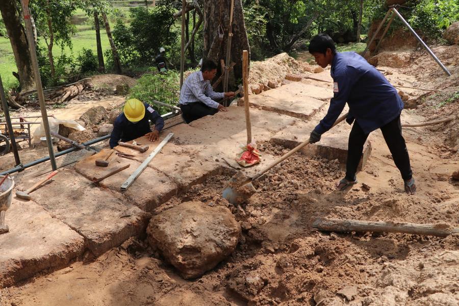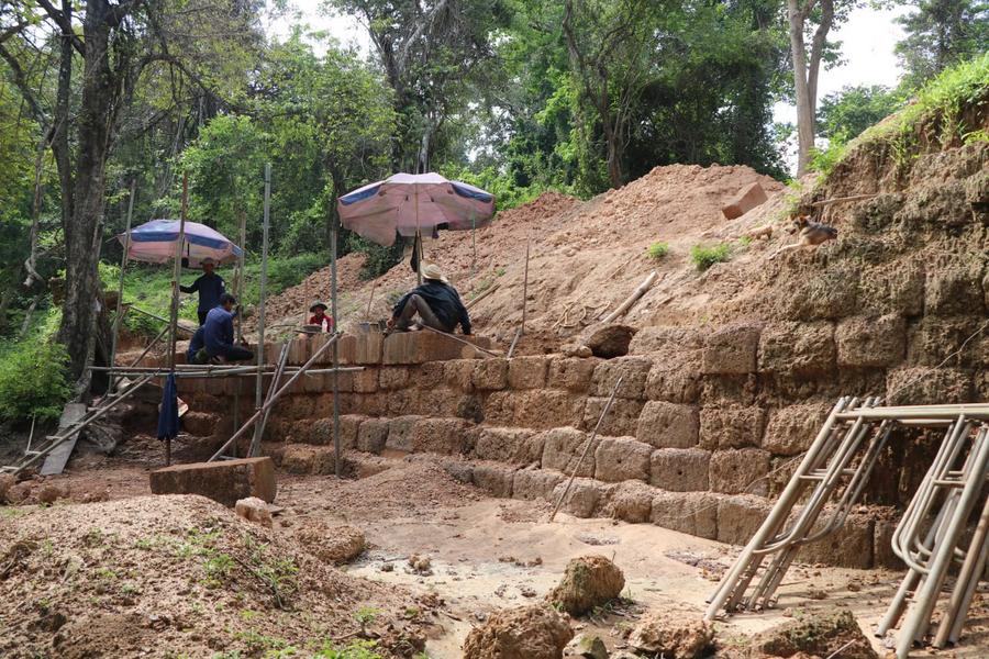 Sokny said prior to the restoration work, the team had conducted excavations to analyze the wall's structure and identify the causes of its collapse.