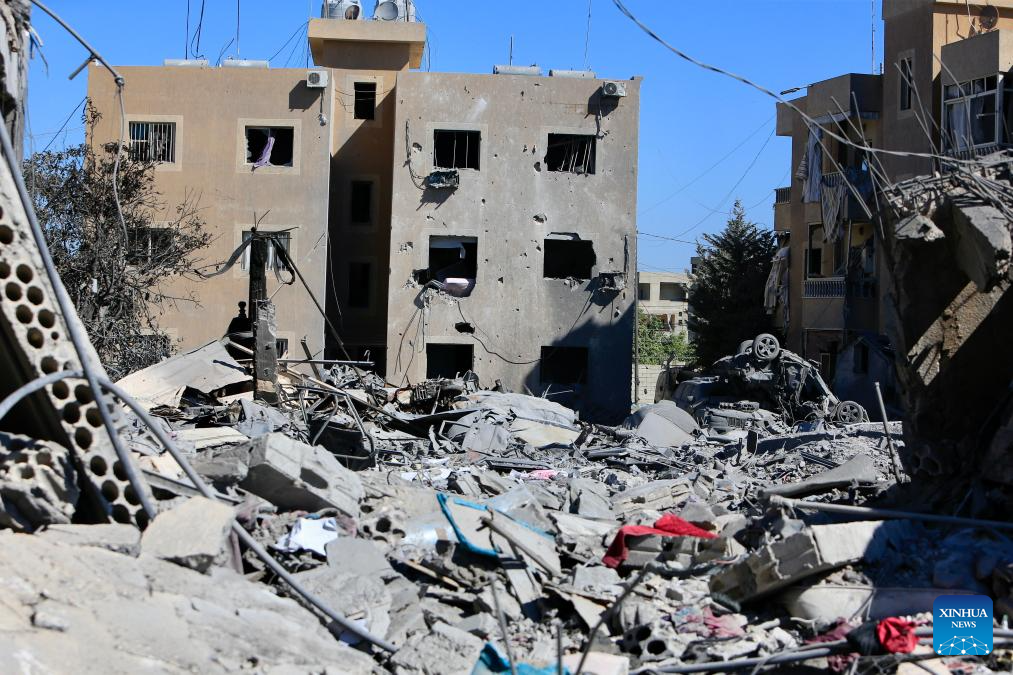 Photo taken on Sept. 26, 2024 shows the rubble of a building damaged in Israeli airstrikes in Saksakiyeh, South Lebanon. As of Thursday, the total death toll from the Israel-Hezbollah clashes since last October has reached 1,540, with injuries totaling 5,410, according to the Lebanese health ministry. (Photo by Ali Hashisho/Xinhua)