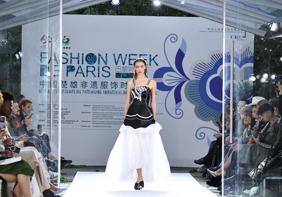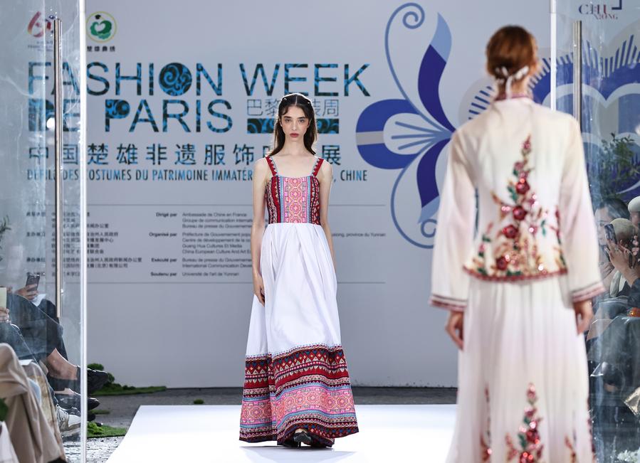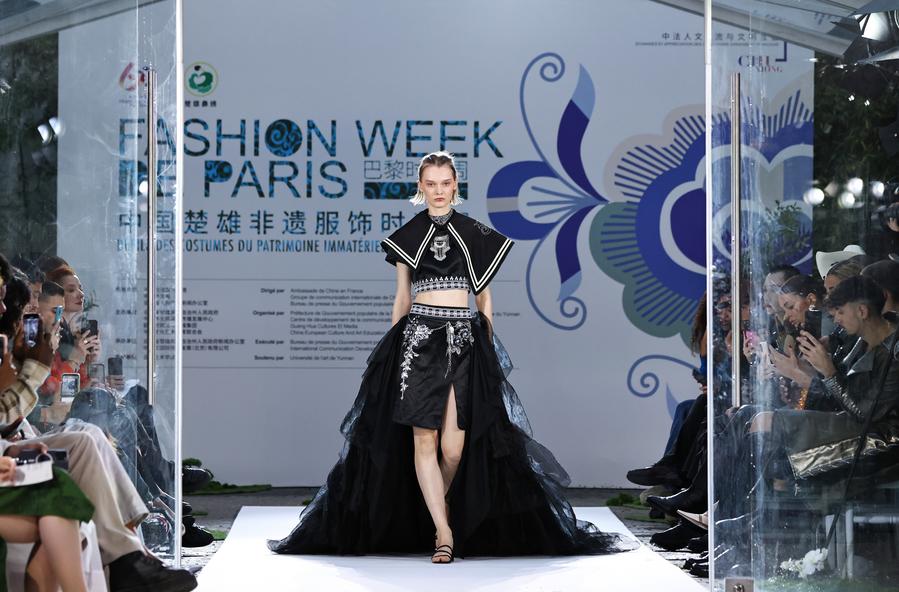 A fashion show of traditional costumes of Chinese Yi ethnic minority from southwest China's Yunnan Province was held in Paris on Thursday night.