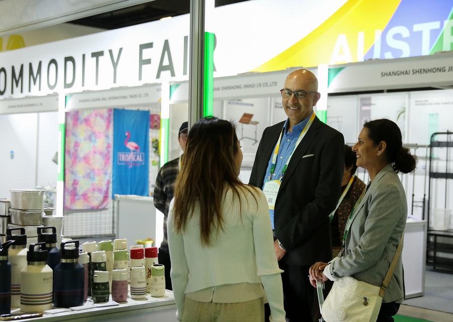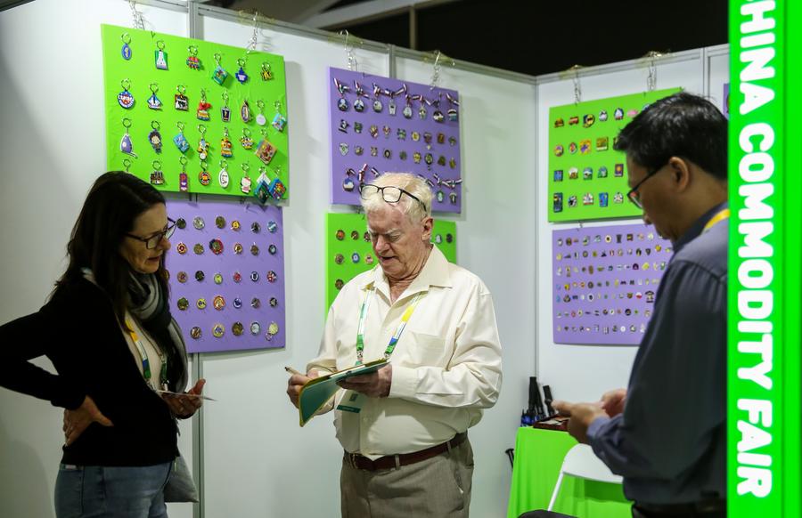 People visit the 1st China Commodity Fair Australia at the International Convention Center (ICC) in Sydney, Australia, Sept. 26, 2024. (Xinhua/Ma Ping)A participant (L) talks with an exhibitor during the 1st China Commodity Fair Australia at the International Convention Center (ICC) in Sydney, Australia, Sept. 26, 2024. (Xinhua/Ma Ping)People visit the 1st China Commodity Fair Australia at the International Convention Center (ICC) in Sydney, Australia, Sept. 26, 2024. (Xinhua/Ma Ping)A participant (L) talks with an exhibitor during the 1st China Commodity Fair Australia at the International Convention Center (ICC) in Sydney, Australia, Sept. 26, 2024. (Xinhua/Ma Ping)
