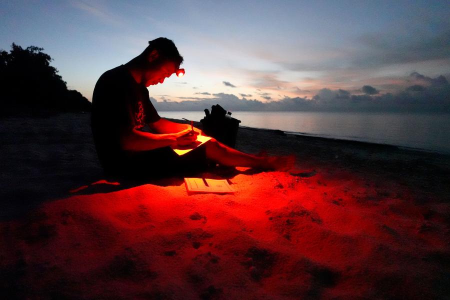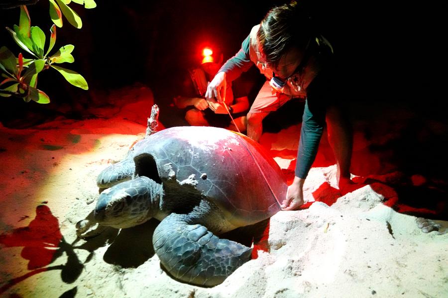 Conservation officials from Yayasan Penyu Indonesia measure the body length of a green sea turtle on Bilang-bilangan island, Berau regency, East Kalimantan, Indonesia on Sept. 27, 2024. (Photo by Armand/Xinhua)Photo taken on Sept. 26, 2024 shows a baby green sea turtle on Bilang-bilangan island, Berau regency, East Kalimantan, Indonesia. (Photo by Armand/Xinhua)A green sea turtle is seen on Bilang-bilangan island, Berau regency, East Kalimantan, Indonesia, Sept. 27, 2024. (Photo by Armand/Xinhua)Photo taken on Sept. 26, 2024 shows a baby green sea turtle on Bilang-bilangan island, Berau regency, East Kalimantan, Indonesia. (Photo by Armand/Xinhua)A conservation official from Yayasan Penyu Indonesia collects data after checking a green sea turtle on Bilang-bilangan island, Berau regency, East Kalimantan, Indonesia, Sept. 27, 2024. (Photo by Armand/Xinhua) ■
