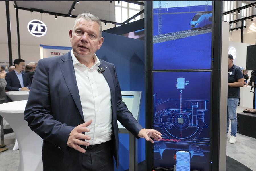 At the ZF's booth, Laier demonstrated how a sensor responds to a simulated rail anomaly and sends signals to the control center. In addition, he told Xinhua that autonomous driving is another key focus, on which the group has cooperation with its Chinese partners.