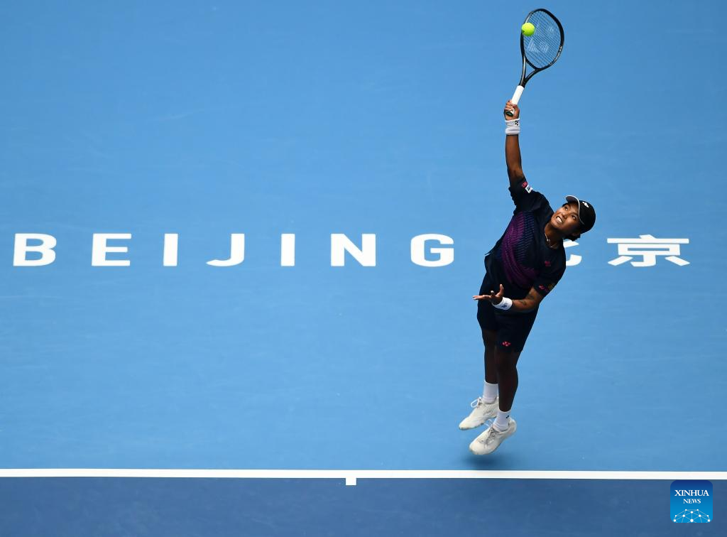 Mananchaya Sawangkaew of Thailand serves during the women's singles second round match between Aryna Sabalenka of Belarus and Mananchaya Sawangkaew of Thailand at 2024 China Open tennis tournament in Beijing, capital of China, Sept. 28, 2024. (Xinhua/Zhang Chenlin)