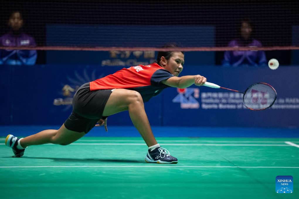 Gao Fangjie competes during the women's singles semifinal match between Gao Fangjie of China and Chiu Pin-Chian of Chinese Taipei at Macao Open Badminton 2024 in Macao, south China, Sept. 28, 2024. (Xinhua/Cheong Kam Ka)