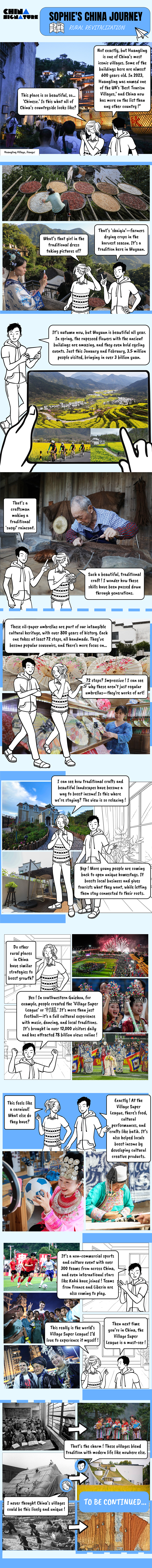 BEIJING, Sept. 29 (Xinhua) -- Sophie Dubois and Li Lei travel to Wuyuan County where ancient traditions and modern innovations meet in the scenic countryside. Wuyuan is just one example of how rural China is blending cultural heritage with tourism to foster local development. As Sophie explores Huangling Village, Li Lei explains how other regions in China have also charted their own unique paths to revitalization. What discussions will the two friends share on this journey?