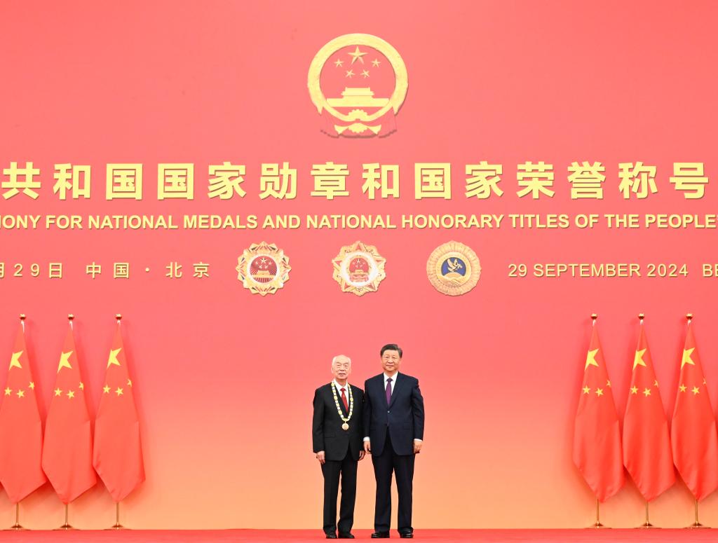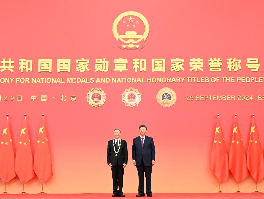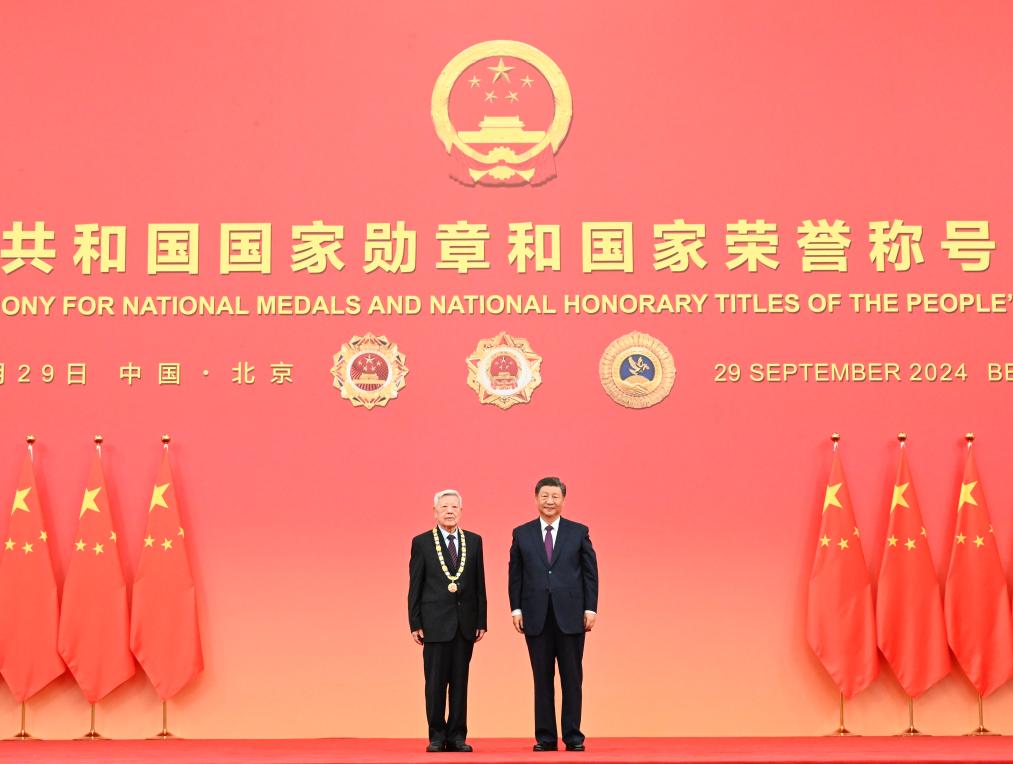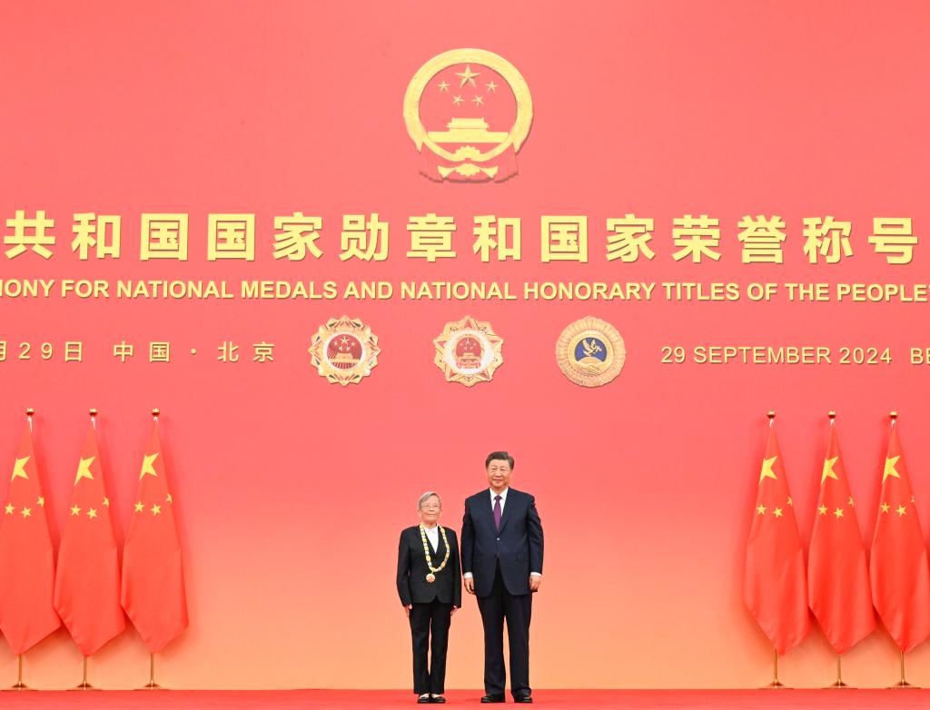 Chinese President Xi Jinping, also general secretary of the Communist Party of China (CPC) Central Committee and chairman of the Central Military Commission, delivers a speech at a presentation ceremony for national medals and national honorary titles of the People's Republic of China at the Great Hall of the People in Beijing, capital of China, Sept. 29, 2024. (Xinhua/Ju Peng)Chinese President Xi Jinping, also general secretary of the Communist Party of China (CPC) Central Committee and chairman of the Central Military Commission, and other leaders have group photos taken with the recipients of national medals and national honorary titles of the People's Republic of China in Beijing, capital of China, Sept. 29, 2024. (Xinhua/Li Xueren)Chinese President Xi Jinping, also general secretary of the Communist Party of China (CPC) Central Committee and chairman of the Central Military Commission, delivers a speech at a presentation ceremony for national medals and national honorary titles of the People's Republic of China at the Great Hall of the People in Beijing, capital of China, Sept. 29, 2024. (Xinhua/Li Tao)Chinese President Xi Jinping, also general secretary of the Communist Party of China (CPC) Central Committee and chairman of the Central Military Commission, delivers a speech at a presentation ceremony for national medals and national honorary titles of the People's Republic of China at the Great Hall of the People in Beijing, capital of China, Sept. 29, 2024. (Xinhua/Shen Hong)Chinese President Xi Jinping, also general secretary of the Communist Party of China (CPC) Central Committee and chairman of the Central Military Commission, walks into the venue of a presentation ceremony for national medals and national honorary titles of the People's Republic of China with the recipients at the Great Hall of the People in Beijing, capital of China, Sept. 29, 2024. (Xinhua/Xie Huanchi)Chinese President Xi Jinping, also general secretary of the Communist Party of China (CPC) Central Committee and chairman of the Central Military Commission, walks into the venue of a presentation ceremony for the national medals and honorary titles of the People's Republic of China with the recipients at the Great Hall of the People in Beijing, capital of China, Sept. 29, 2024. (Xinhua/Yan Yan)Chinese President Xi Jinping, also general secretary of the Communist Party of China (CPC) Central Committee and chairman of the Central Military Commission, walks into the venue of a presentation ceremony for the national medals and honorary titles of the People's Republic of China with the recipients at the Great Hall of the People in Beijing, capital of China, Sept. 29, 2024. (Xinhua/Wang Ye)Chinese President Xi Jinping, also general secretary of the Communist Party of China (CPC) Central Committee and chairman of the Central Military Commission, walks into the venue of a presentation ceremony for the national medals and honorary titles of the People's Republic of China with the recipients at the Great Hall of the People in Beijing, capital of China, Sept. 29, 2024. (Xinhua/Wang Ye)Chinese President Xi Jinping, also general secretary of the Communist Party of China (CPC) Central Committee and chairman of the Central Military Commission, presents the Medal of the Republic to Huang Zongde in Beijing, capital of China, Sept. 29, 2024. (Xinhua/Xie Huanchi)Chinese President Xi Jinping, also general secretary of the Communist Party of China (CPC) Central Committee and chairman of the Central Military Commission, presents the Medal of the Republic to Huang Zongde in Beijing, capital of China, Sept. 29, 2024. (Xinhua/Ju Peng)Chinese President Xi Jinping, also general secretary of the Communist Party of China (CPC) Central Committee and chairman of the Central Military Commission, presents the Friendship Medal to Dilma Rousseff in Beijing, capital of China, Sept. 29, 2024. (Xinhua/Xie Huanchi)Chinese President Xi Jinping, also general secretary of the Communist Party of China (CPC) Central Committee and chairman of the Central Military Commission, presents the Friendship Medal to Dilma Rousseff in Beijing, capital of China, Sept. 29, 2024. (Xinhua/Ju Peng)Chinese President Xi Jinping, also general secretary of the Communist Party of China (CPC) Central Committee and chairman of the Central Military Commission, presents the medal for the title of People's Guard to Bayika Kalidibek in Beijing, capital of China, Sept. 29, 2024. (Xinhua/Xie Huanchi)Chinese President Xi Jinping, also general secretary of the Communist Party of China (CPC) Central Committee and chairman of the Central Military Commission, presents the medal for the title of People's Guard to Bayika Kalidibek in Beijing, capital of China, Sept. 29, 2024. (Xinhua/Ju Peng)Chinese President Xi Jinping, also general secretary of the Communist Party of China (CPC) Central Committee and chairman of the Central Military Commission, presents the medal for the title of People's Artist to Tian Hua in Beijing, capital of China, Sept. 29, 2024. (Xinhua/Xie Huanchi)Chinese President Xi Jinping, also general secretary of the Communist Party of China (CPC) Central Committee and chairman of the Central Military Commission, presents the medal for the title of People's Artist to Tian Hua in Beijing, capital of China, Sept. 29, 2024. (Xinhua/Ju Peng)Chinese President Xi Jinping, also general secretary of the Communist Party of China (CPC) Central Committee and chairman of the Central Military Commission, presents the medal for the title of People's Craftsman to Xu Zhenchao in Beijing, capital of China, Sept. 29, 2024. (Xinhua/Xie Huanchi)Chinese President Xi Jinping, also general secretary of the Communist Party of China (CPC) Central Committee and chairman of the Central Military Commission, presents the medal for the title of People's Craftsman to Xu Zhenchao in Beijing, capital of China, Sept. 29, 2024. (Xinhua/Ju Peng)Chinese President Xi Jinping, also general secretary of the Comm