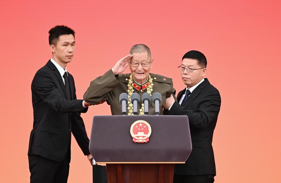 The motorcade carrying recipients of national medals and national honorary titles is accompanied by motorcycle escorts on the way to the Great Hall of the People in Beijing, capital of China, Sept. 29, 2024. China held a high-profile ceremony on Sunday morning to award the highest state honors ahead of the 75th founding anniversary of the People's Republic of China. (Xinhua/Gao Jie)Members of the Chinese Young Pioneers salute to the recipients of national medals and national honorary titles at the Great Hall of the People in Beijing, capital of China, Sept. 29, 2024. (Xinhua/Yue Yuewei)Huang Zongde, a recipient of the Medal of the Republic, salutes during the presentation ceremony at the Great Hall of the People in Beijing, capital of China, Sept. 29, 2024. (Xinhua/Yan Yan)Passengers line up to board a train at Harbin Railway Station in Harbin, northeast China's Heilongjiang Province, Sept. 29, 2024. China's railway network is expected to handle 175 million passenger trips during the upcoming 10-day National Day holiday travel rush, China State Railway Group Co., Ltd. said Sunday. (Photo by Yuan Yong/Xinhua)An aerial drone photo shows people in festive costumes performing Guozhuang dance during a celebration ahead of the 75th founding anniversary of the People's Republic of China, in Daofu County, the Tibetan Autonomous Prefecture of Garze, southwest China's Sichuan Province, Sept. 29, 2024. (Xinhua/Shen Bohan)People participate in power walking on the Macao Bridge in celebration of the inauguration of Macao Bridge in Macao, south China, Sept. 29, 2024. (Xinhua/Cheong Kam Ka)Passengers aboard the first direct flight from China's Shanghai to Kazan operated by China Eastern Airlines, arrive at the airport of Kazan in Kazan, Russia, Sept. 28, 2024. China's financial hub Shanghai launched its first direct air route to Kazan, Russia, expanding travel options for the upcoming National Day holiday. (Xinhua/Cao Yang)Visitors take photos of giant pandas Ri Ri (L) and Shin Shin at Ueno Zoo in Tokyo, Japan, Sept. 28, 2024. Beloved giant pandas Ri Ri and Shin Shin left Tokyo's Ueno Zoo in the early hours of Sunday to fly back to their home country China due to age-related health concerns. (Xinhua/Zhang Xiaoyu)A model presents a creation as part of Prince Kung's Palace Fashion Show by designer Laurence Xu at Salle Wagram in Paris, France, Sept. 28, 2024. (Xinhua/Gao Jing)A volunteer paints tiger makeup on a child's face during the "Tiger Day" event in Vladivostok, Russia, Sept. 29, 2024. Since the year 2000, the last Sunday of September has been the "Tiger Day" in Russia. On Sunday, the city of Vladivostok hosted a variety of colorful events to promote awareness of protecting tigers and other wild animals. (Photo by Guo Feizhou/Xinhua)A Thai dancer performs during the 2024 Thai Festival at the Vancouver Art Gallery plaza in Vancouver, British Columbia, Canada, Sept. 28, 2024. (Photo by Liang Sen/Xinhua)This photo taken on Sept. 29, 2024 shows a broken doll on the ground in Beirut's southern suburb, Lebanon. At least 18 people were killed and 30 others injured early Sunday in Israeli air strikes on dozens of towns and villages in southern and eastern Lebanon, according to Lebanese military sources. (Xinhua/Bilal Jawich)■
