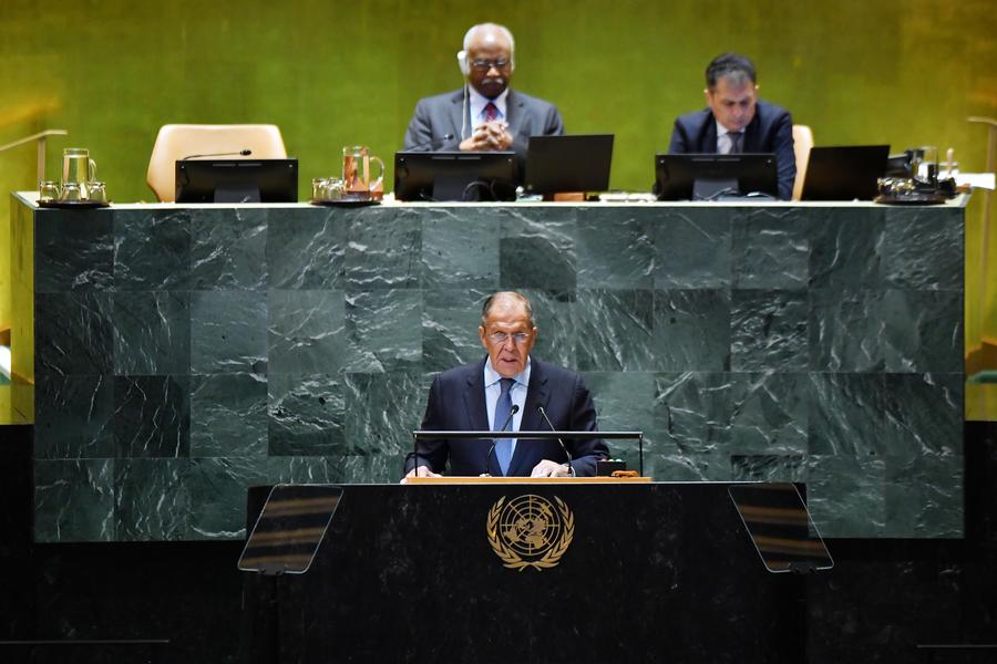 UNITED NATIONS, Sept. 28 (Xinhua) -- The West continues to undermine global trust through unilateral actions that bypass the United Nations, Russian Foreign Minister Sergey Lavrov said on Saturday at the 79th session of the UN General Assembly.