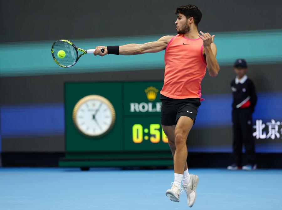 BEIJING, Sept. 30 (Xinhua) -- Second-seeded Carlos Alcaraz of Spain will confront Russia's Daniil Medvedev after beating another Russian player Karen Khachanov in the men's singles quarterfinals of the China Open, while Magda Linette of Poland upset the third seed Jasmine Paolini of Italy here on Monday.