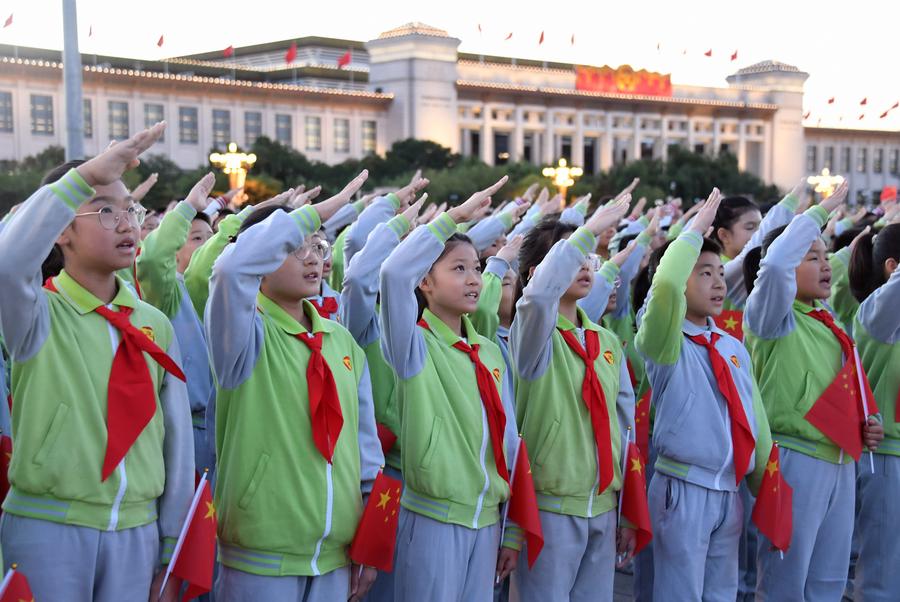 InPics: National flag-raising ceremony held on 75th birthday of PRC-Xinhua