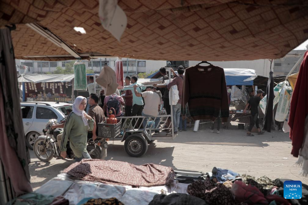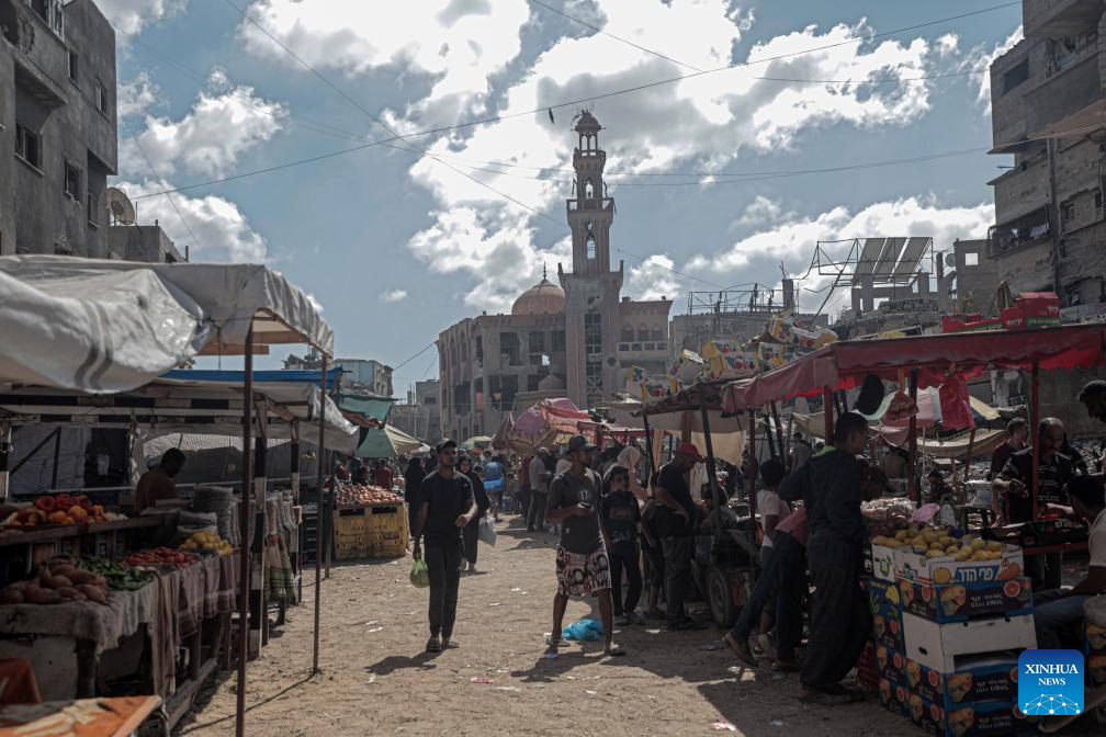 Palestinians are seen at a market in the southern Gaza Strip city of Khan Younis, on Sept. 30, 2024. (Photo by Rizek Abdeljawad/Xinhua)