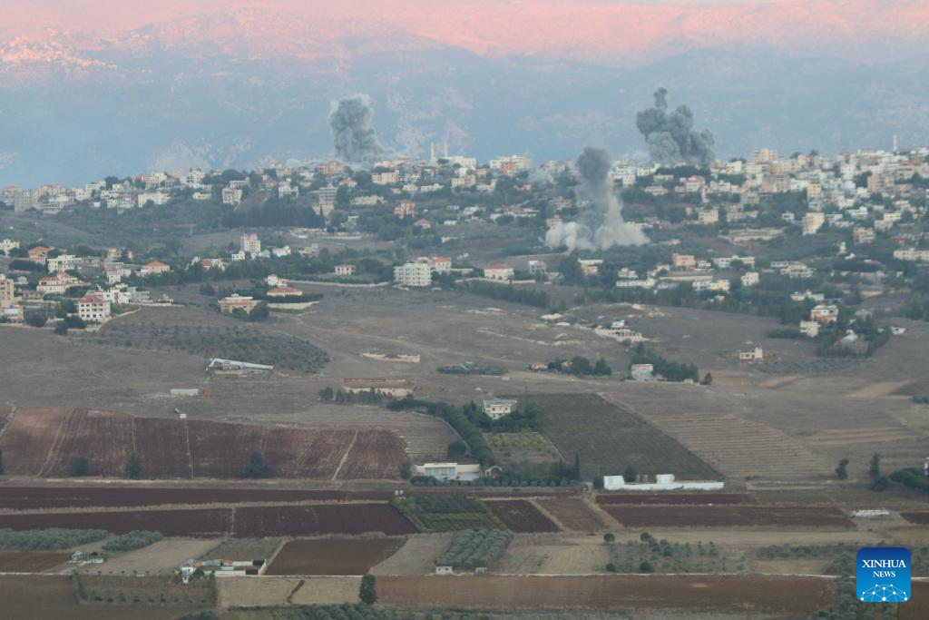 Smoke rises following Israeli airstrikes on the border area in southeastern Lebanon, on Sept. 30, 2024. Israel's Security Cabinet on Monday night approved "the next phase" of the military operation in Lebanon as Israeli ground forces reportedly launched artillery and tank fire into southern Lebanon. (Photo by Taher Abu Hamdan/Xinhua)