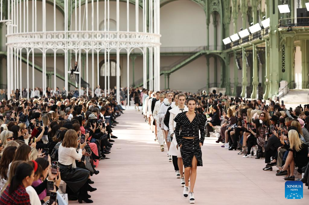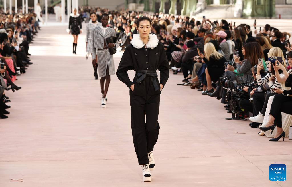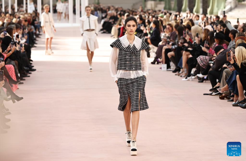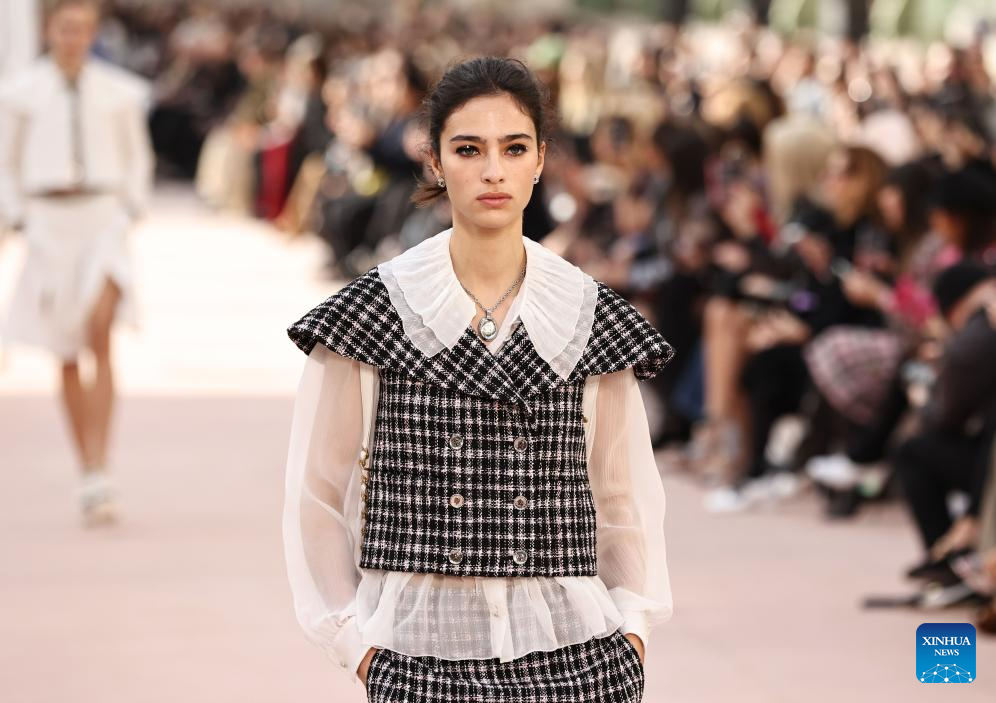 A model presents a creation from the Spring/Summer 2025 ready-to-wear collections by French fashion house Chanel during the Paris Fashion Week, in Paris, France, on Oct. 1, 2024. (Xinhua/Gao Jing)