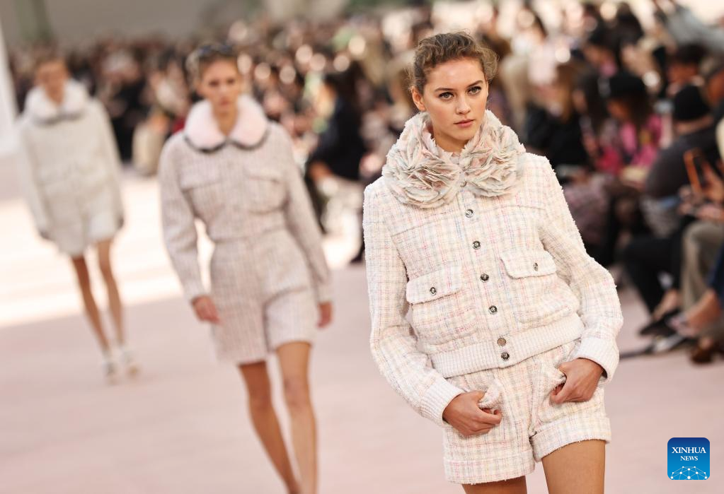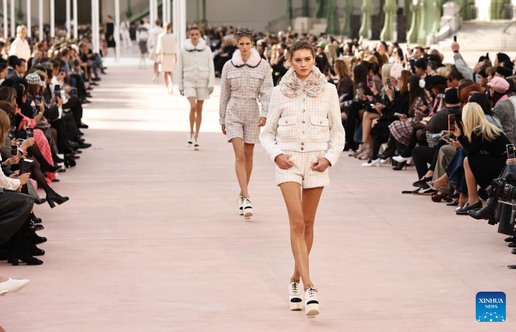 Models present creations from the Spring/Summer 2025 ready-to-wear collections by French fashion house Chanel during the Paris Fashion Week, in Paris, France, on Oct. 1, 2024. (Xinhua/Gao Jing)