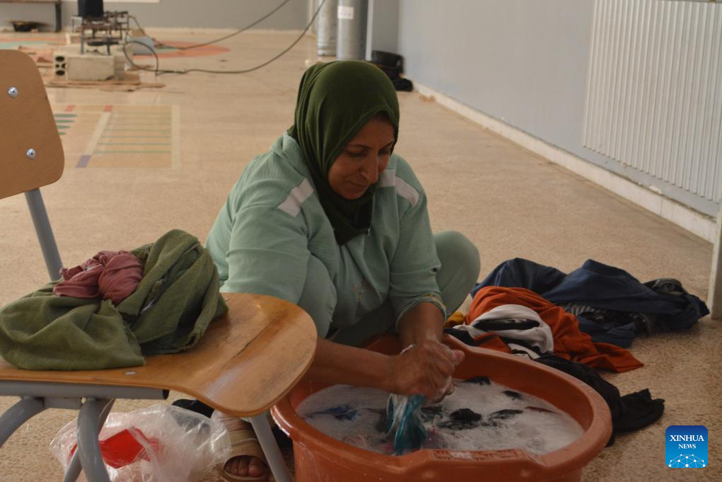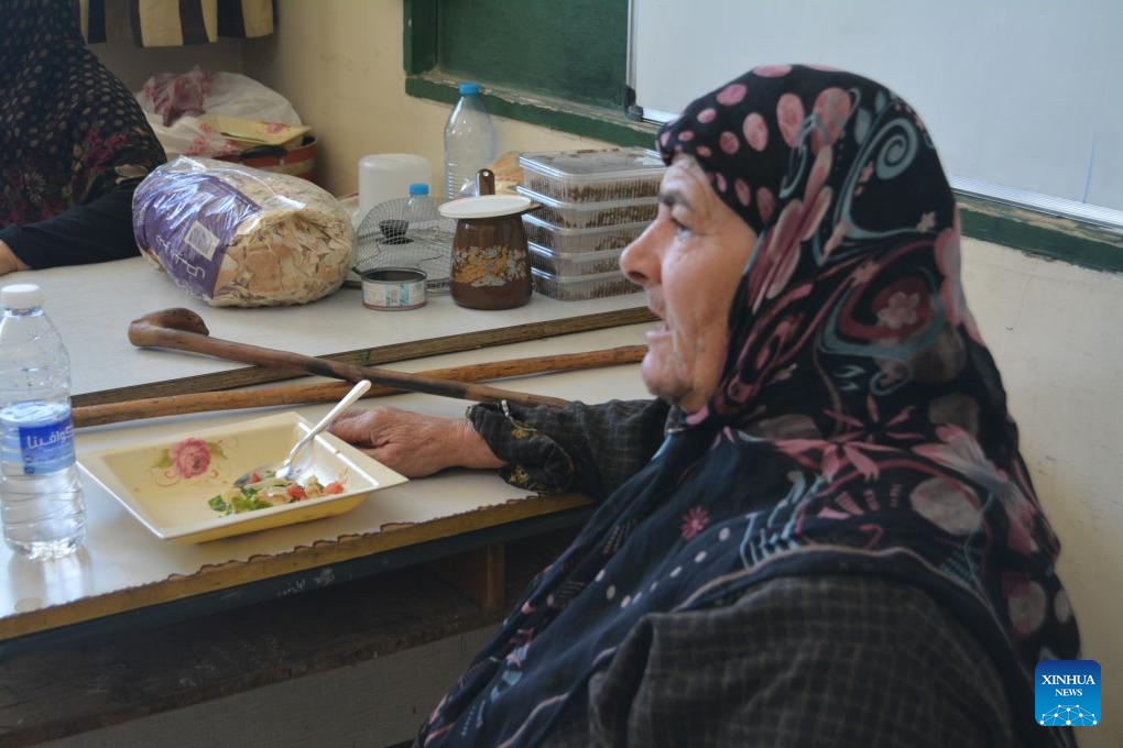 Displaced people from southern Lebanon are seen in a shelter center in the town of Joub Jannine, Lebanon, Oct. 5, 2024. The total number of displaced persons in Lebanon due to Israeli airstrikes has risen to nearly 1.2 million, according to a report released on Wednesday by the Disaster Risk Management Unit at the Lebanese Council of Ministers. (Photo by Taher Abu Hamdan/Xinhua)