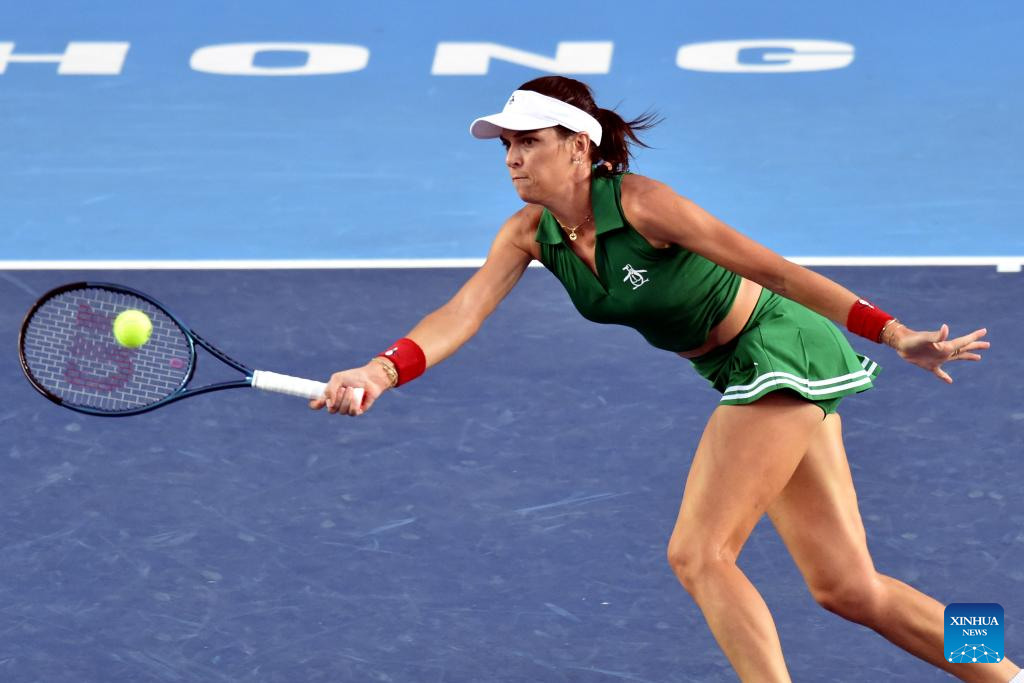 Ajla Tomljanovic of Australia hits a return during the women's singles final match between Ajla Tomljanovic of Australia and Clara Tauson of Denmark at WTA Hong Kong 125 Open tennis tournament in Hong Kong, south China, Oct. 6, 2024. (Photo by Lo Ping Fai/Xinhua)