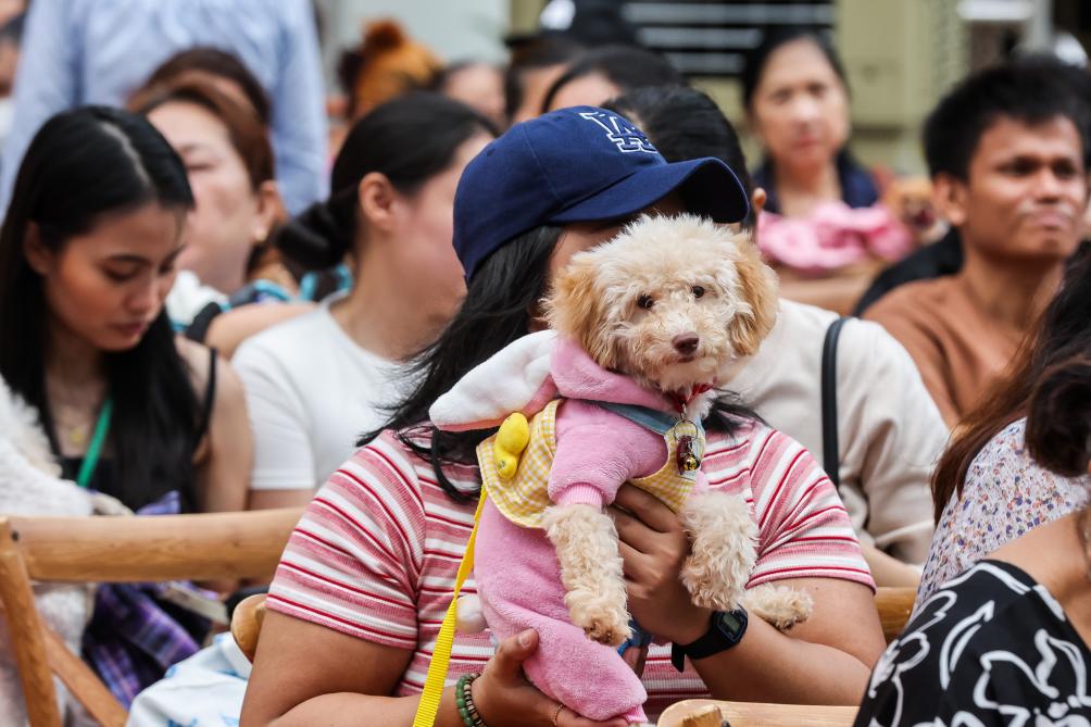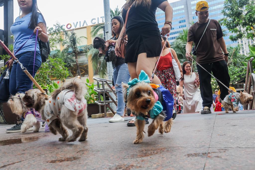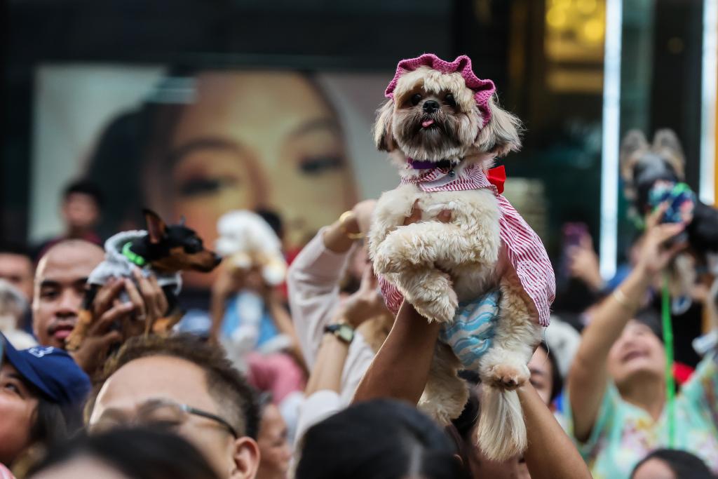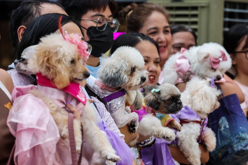 People raise their costumed pet dogs as they participate in a pet parade in Quezon City, the Philippines on Oct. 6, 2024. (Xinhua/Rouelle Umali)A woman carries her costumed pet dog as they participate in a pet parade in Quezon City, the Philippines on Oct. 6, 2024. (Xinhua/Rouelle Umali)People and their costumed pet animals participate in a pet parade in Quezon City, the Philippines on Oct. 6, 2024. (Xinhua/Rouelle Umali)A pet dog with colorful dyed legs is seen in a pet parade in Quezon City, the Philippines on Oct. 6, 2024. (Xinhua/Rouelle Umali)Pet dogs participate in a pet parade in Quezon City, the Philippines on Oct. 6, 2024. (Xinhua/Rouelle Umali)People and their costumed pet animals participate in a pet parade in Quezon City, the Philippines on Oct. 6, 2024. (Xinhua/Rouelle Umali)People raise their costumed pet dogs as they participate in a pet parade in Quezon City, the Philippines on Oct. 6, 2024. (Xinhua/Rouelle Umali)