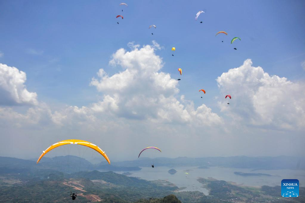 Participants compete during the cross country category at the West Java Paragliding Championship (WJPC) 2024 at Batu Dua in Sumedang regency, West Java, Indonesia, on Oct. 6, 2024. (Photo by Septianjar Muharam/Xinhua)