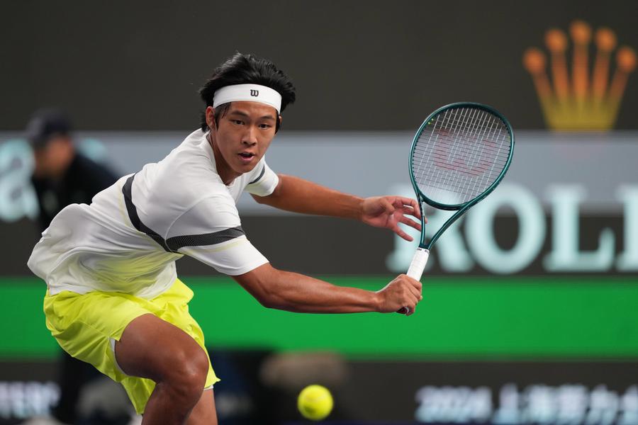 SHANGHAI, Oct. 7 (Xinhua) -- Taylor Fritz of the United States overcame French player Terence Atmane 7-6(4), 7-6(5) to secure an opening victory in their resumed match at the ATP Shanghai Masters on Monday.