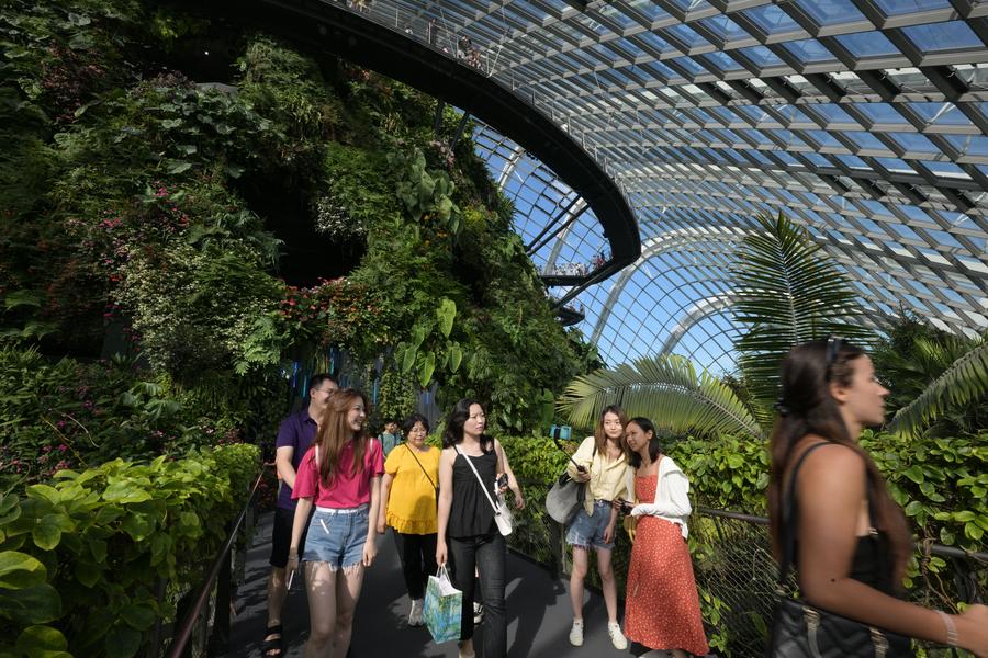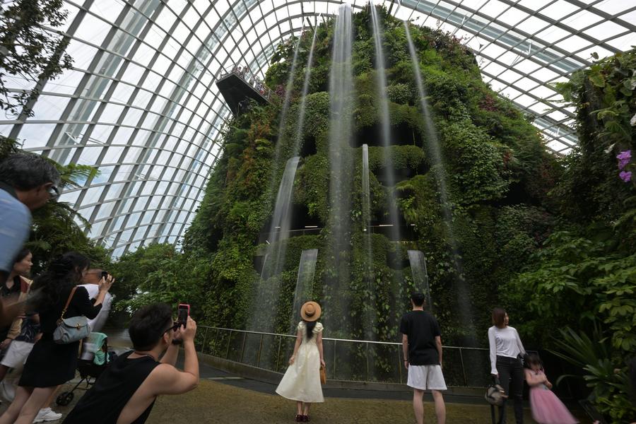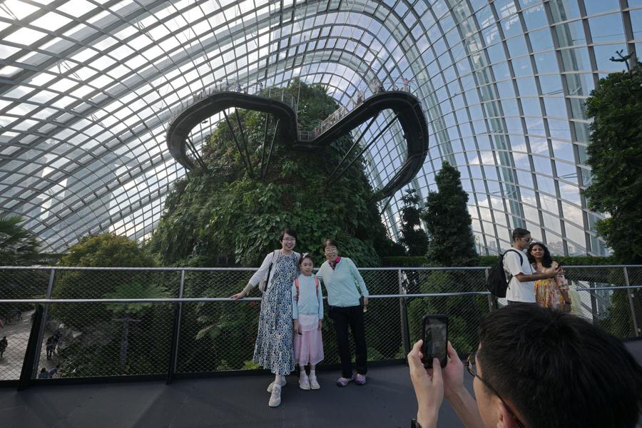 Tourists pose for photos inside the Cloud Forest at Singapore's Gardens by the Bay on Oct. 3, 2024. (Photo by Then Chih Wey/Xinhua)Tourists visit the Cloud Forest at Singapore's Gardens by the Bay on Oct. 3, 2024. (Photo by Then Chih Wey/Xinhua)Tourists visit the Supertree Grove at Singapore's Gardens by the Bay on Oct. 3, 2024. (Photo by Then Chih Wey/Xinhua)■