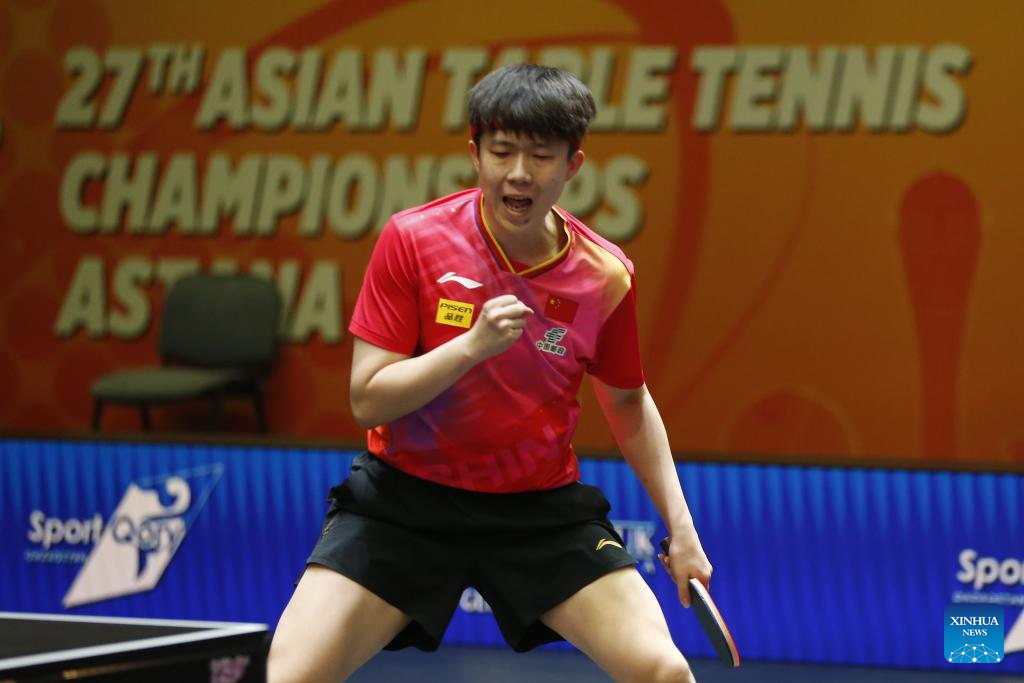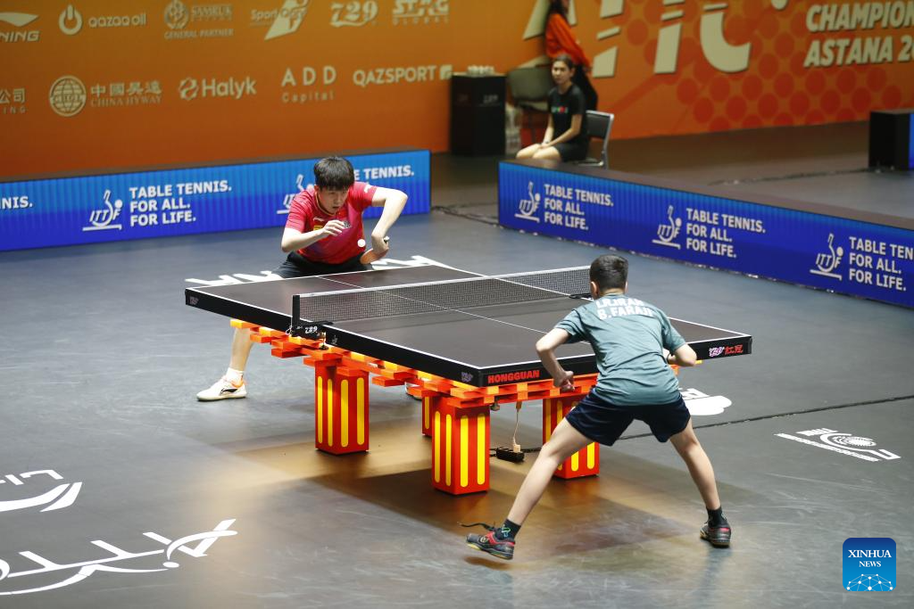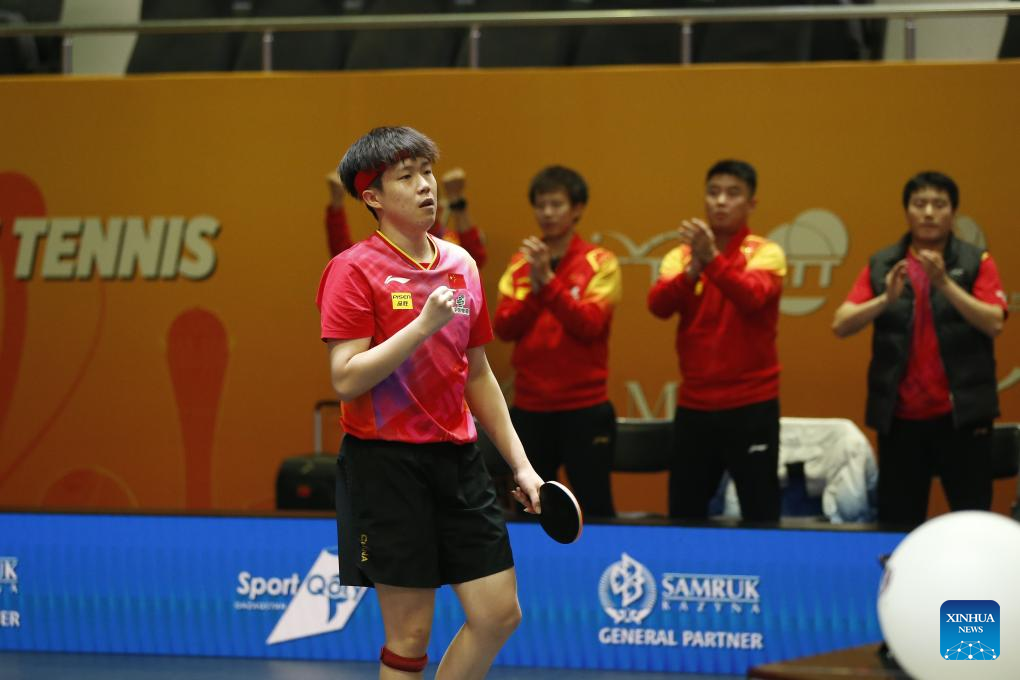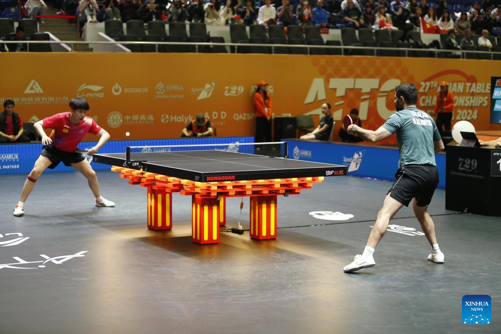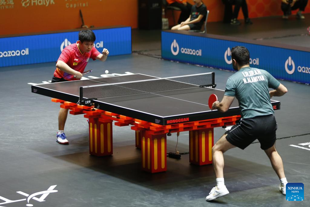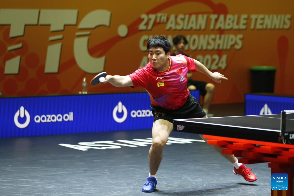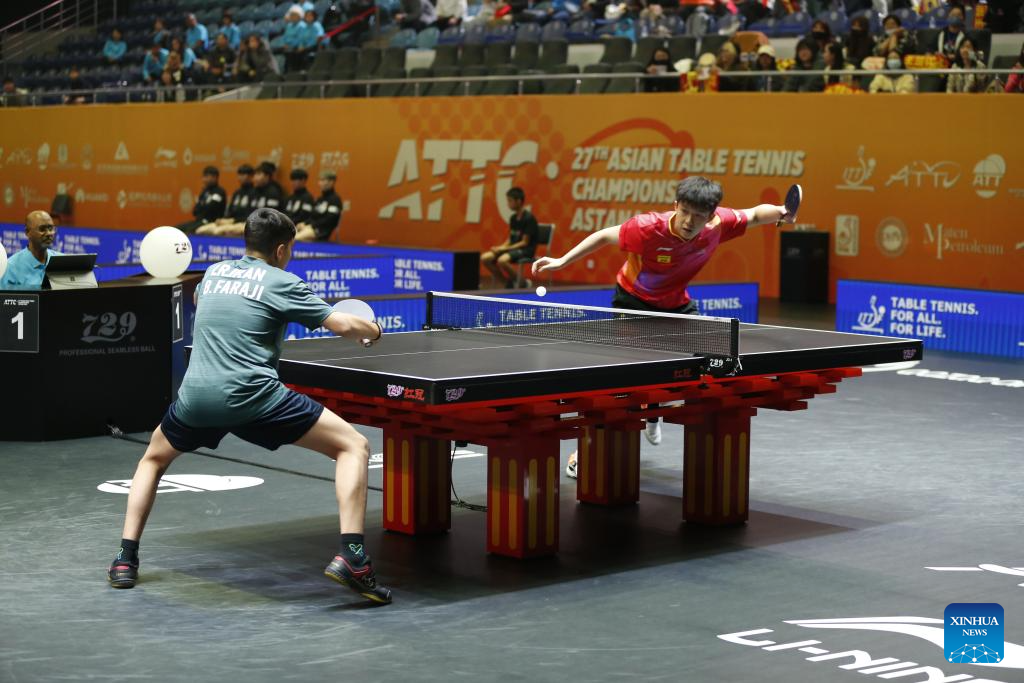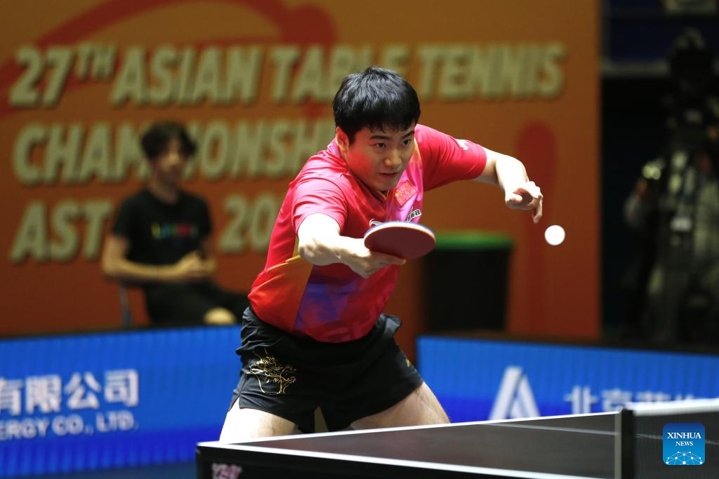 ASTANA, Oct. 8 (Xinhua) -- China overcame world No. 1 Wang Chuqin's shocking defeat in the opening set to dispatch Iran 3-1, reaching the men's team semifinals of the Asian Table Tennis Championships on Tuesday.