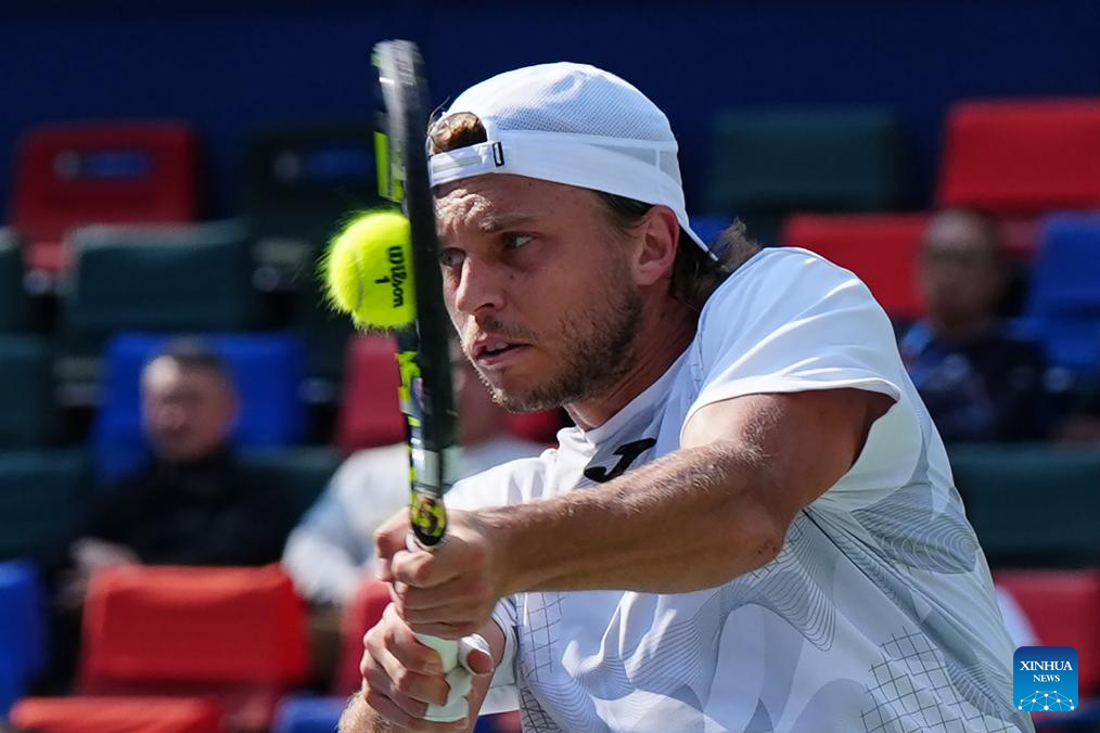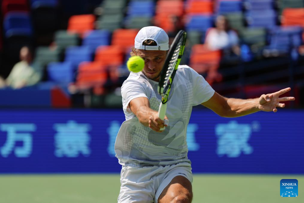Alexandre Muller hits a return during the men's singles round of 32 match between Stefanos Tsitsipas of Greece and Alexandre Muller of France at the ATP World Tour Shanghai Masters tennis tournament in Shanghai, east China, Oct. 8, 2024. (Xinhua/Xu Yanan)