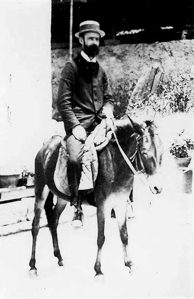 American missionary doctor Edward Lydston Bliss rides a mule on his way to see patients in Shaowu, Fujian province, in the 1890s.[Photo provided to China Daily]
