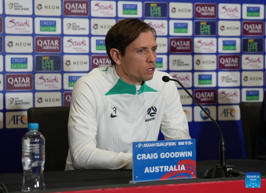 Craig Goodwin of Team Australia attends a press conference prior to the 2026 FIFA World Cup Asian qualifiers match between China and Australia in Canberra, Australia, on Oct. 9, 2024. (Photo by Xie Sida/Xinhua)