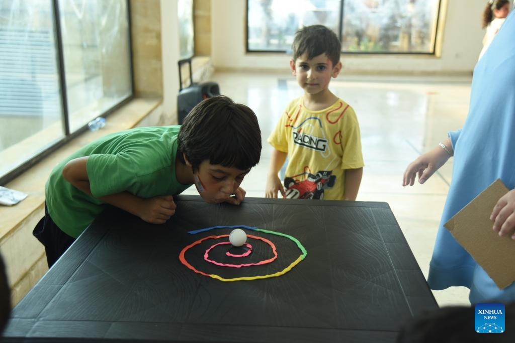 Displaced children play games in Tripoli, Lebanon, Oct. 7, 2024.