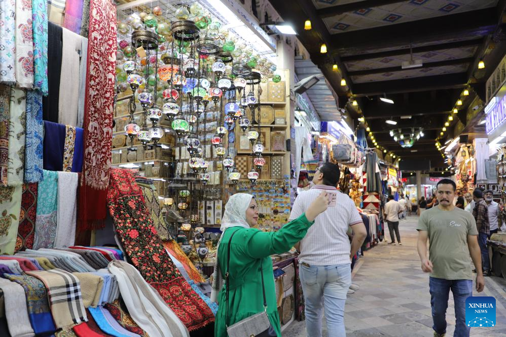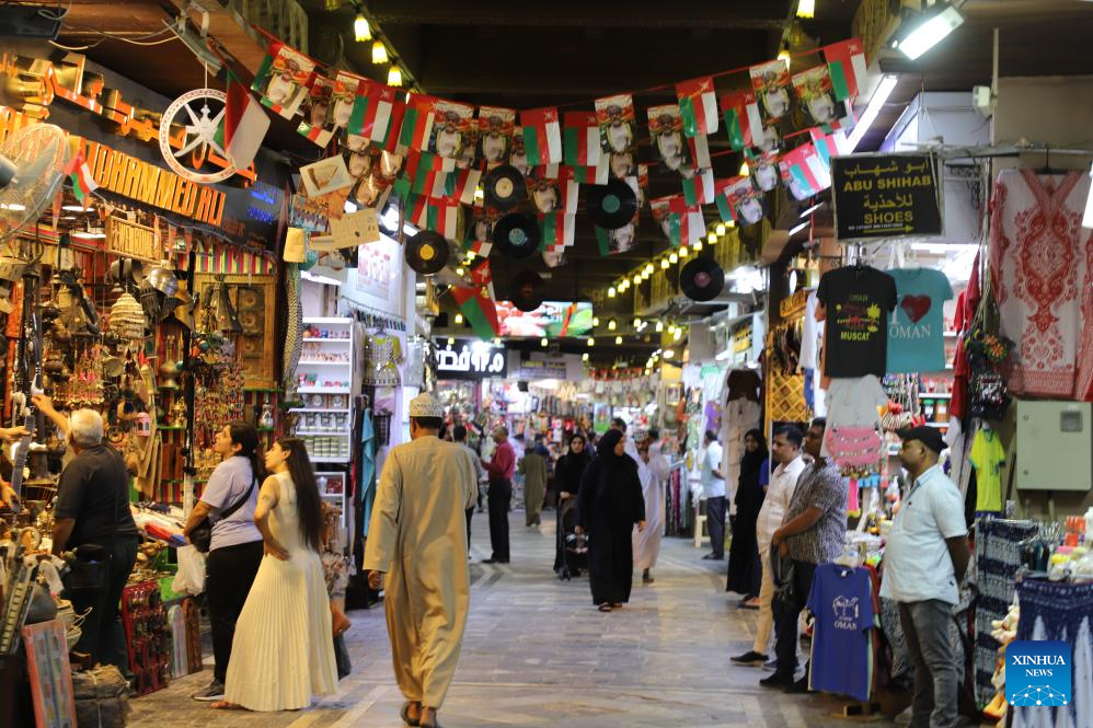 People visit the Mutrah Souq market in Muscat, Oman, Oct. 8, 2024. Mutrah Souq, located along the waterfront of Muscat, is a traditional Arab market. Shops here offer artifacts, antiques, textiles and jewelry, making the market one of the most well known tourist attractions in Muscat. (Xinhua/Wang Qiang)