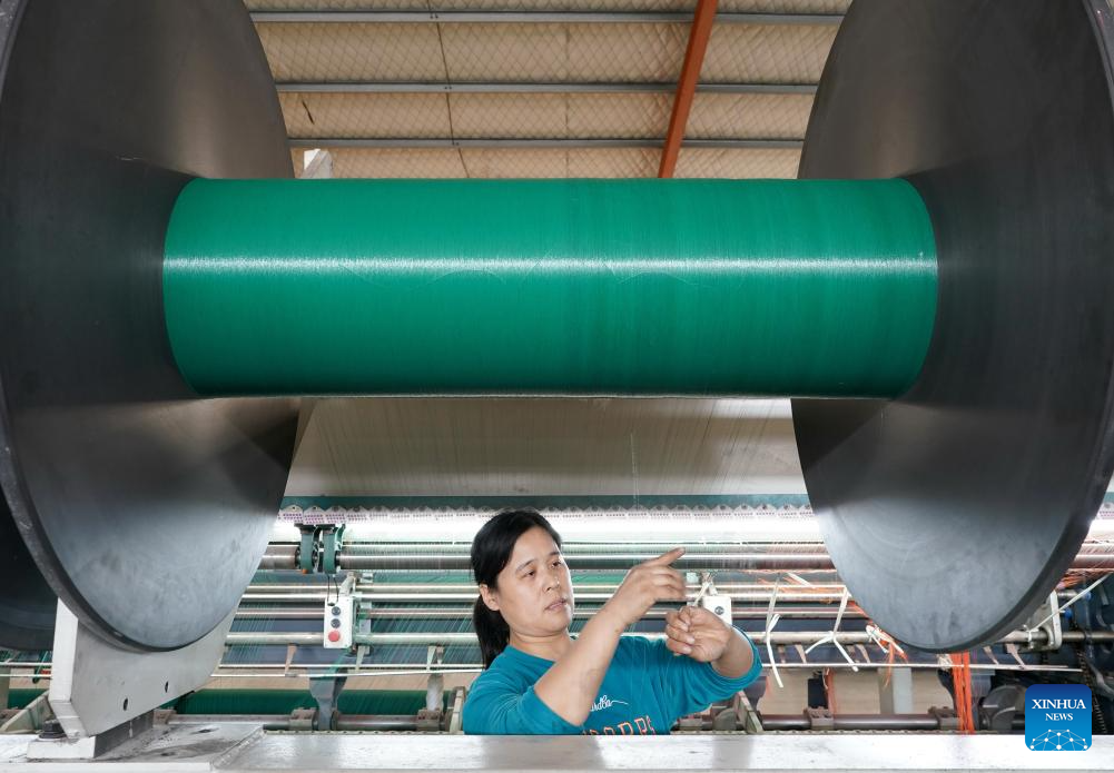 A woman works at a workshop of a net-manufacturing company in Huimin County, east China's Shandong Province, Oct. 8, 2024.
