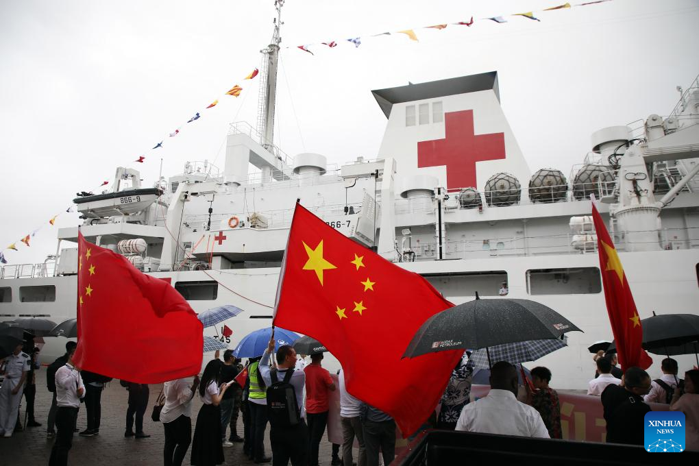 The ship will begin its first seven-day friendly visit to Camerron and provide medical services starting from Monday. (Photo by Liu Zhilei/Xinhua)