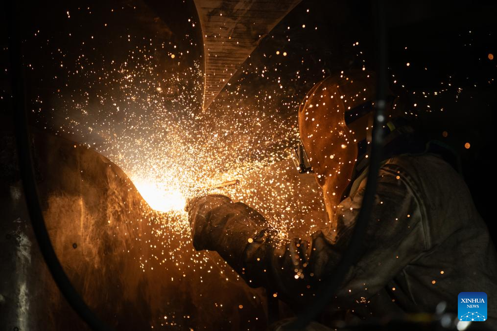 A worker operates at a workshop of a manufacture plant under the Harbin Electronic Corporation (Hadian Group) in Harbin, northeast China's Heilongjiang Province, Oct. 8, 2024. (Xinhua/Zhang Tao)