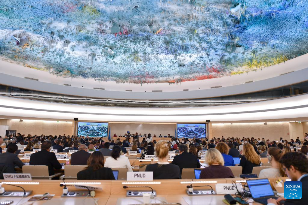 The 57th session of the United Nations Human Rights Council is held in Geneva, Switzerland, Oct. 9, 2024. A resolution marking the 30th anniversary of the Beijing Declaration and Platform for Action was adopted by consensus on Wednesday during the 57th session of the United Nations Human Rights Council. (Xinhua/Lian Yi)
