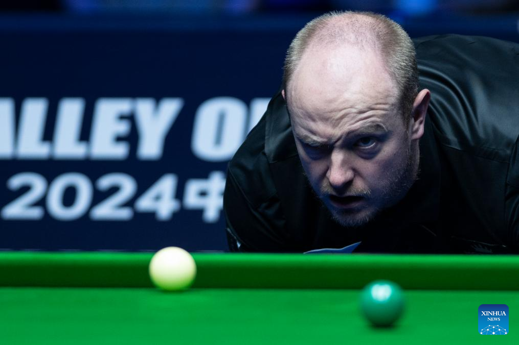 Chris Wakelin reacts during the quarterfinal match between Judd Trump of England and Chris Wakelin of England at the 2024 World Snooker Wuhan Open in Wuhan, central China's Hubei Province, Oct. 10, 2024. (Xinhua/Wu Zhizun)