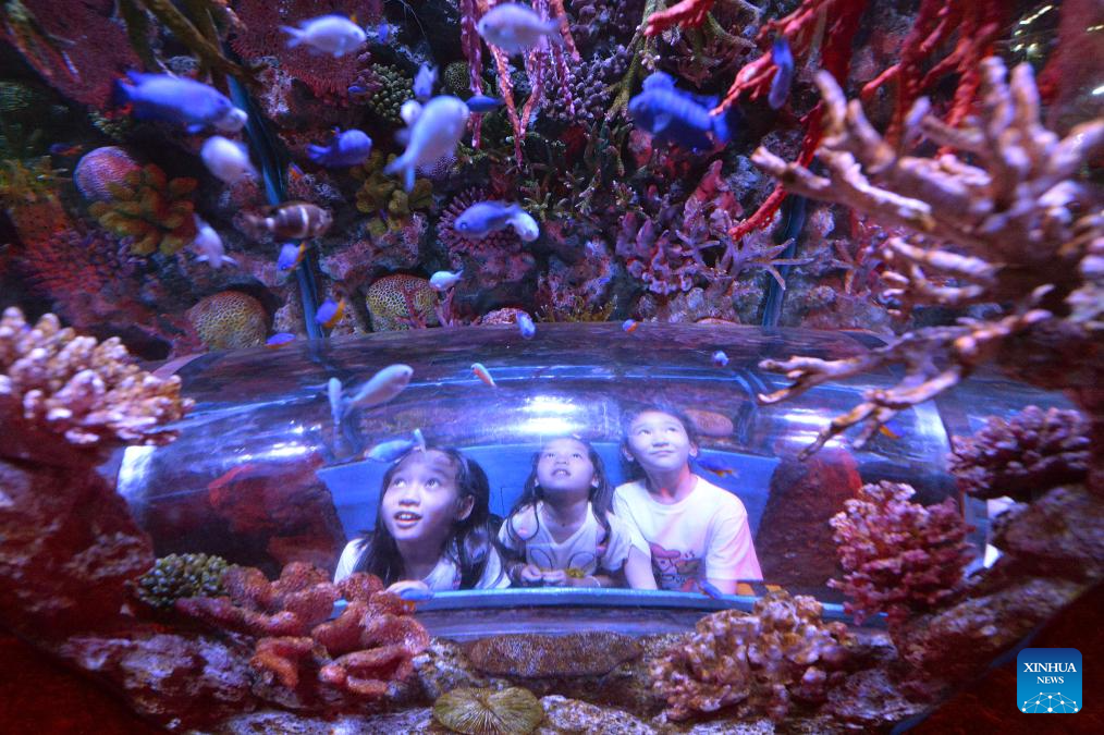 Kids enjoy in Bangkok Sea Life Ocean World aquarium in Bangkok, Thailand, Oct. 9, 2024. (Xinhua/Rachen Sageamsak)