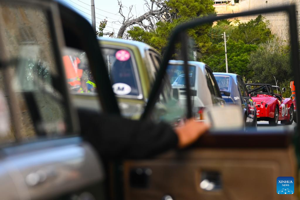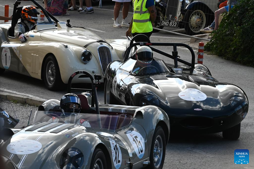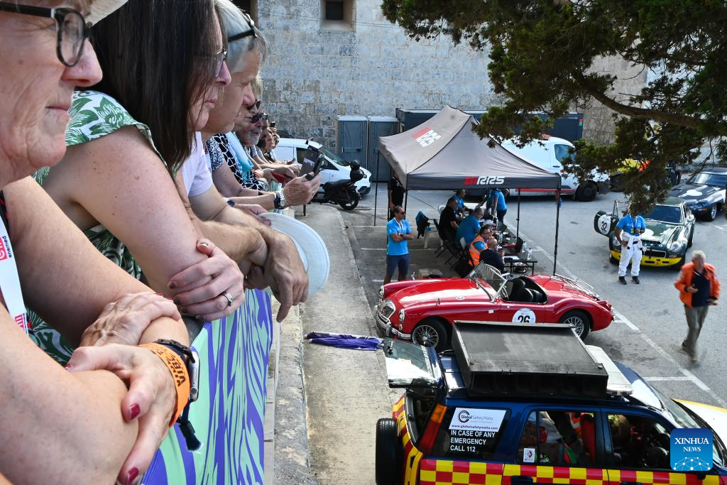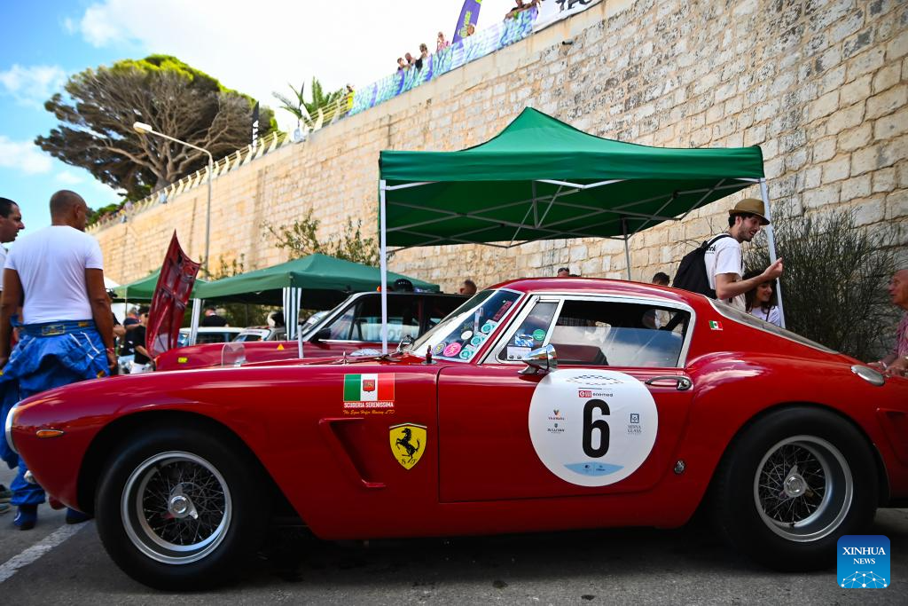 This photo taken on Oct. 12, 2024 shows classic cars during the Mdina Grand Prix in Mdina, Malta. The 14th edition of Classic Mdina Grand Prix is being held between Thursday and Sunday in Mdina. (Photo by Jonathan Borg/Xinhua)