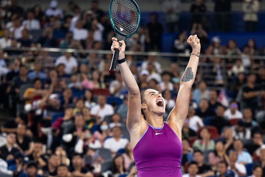WUHAN, Oct. 13 (Xinhua) -- World No. 2 Aryna Sabalenka defeated China's Zheng Qinwen in a 6-3, 5-7, 6-3 thriller on Sunday, claiming her third consecutive Wuhan Open title.