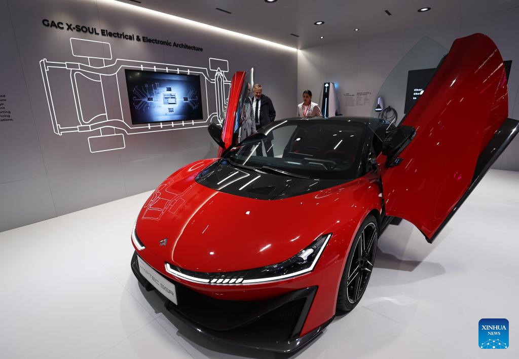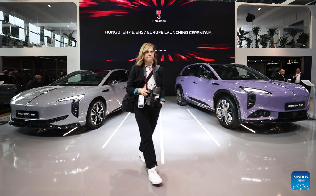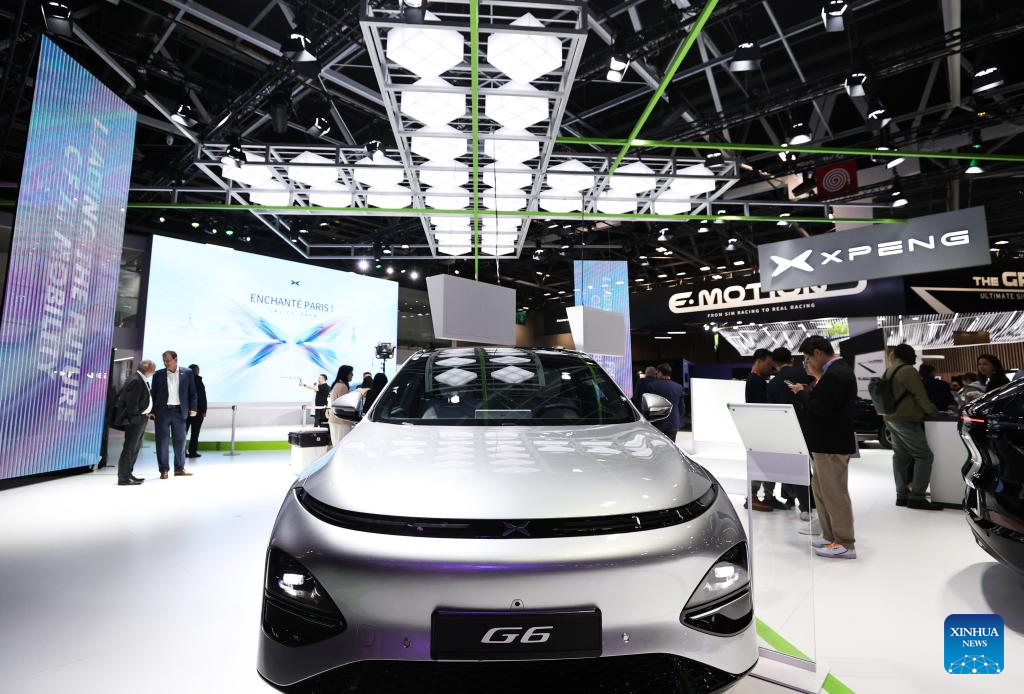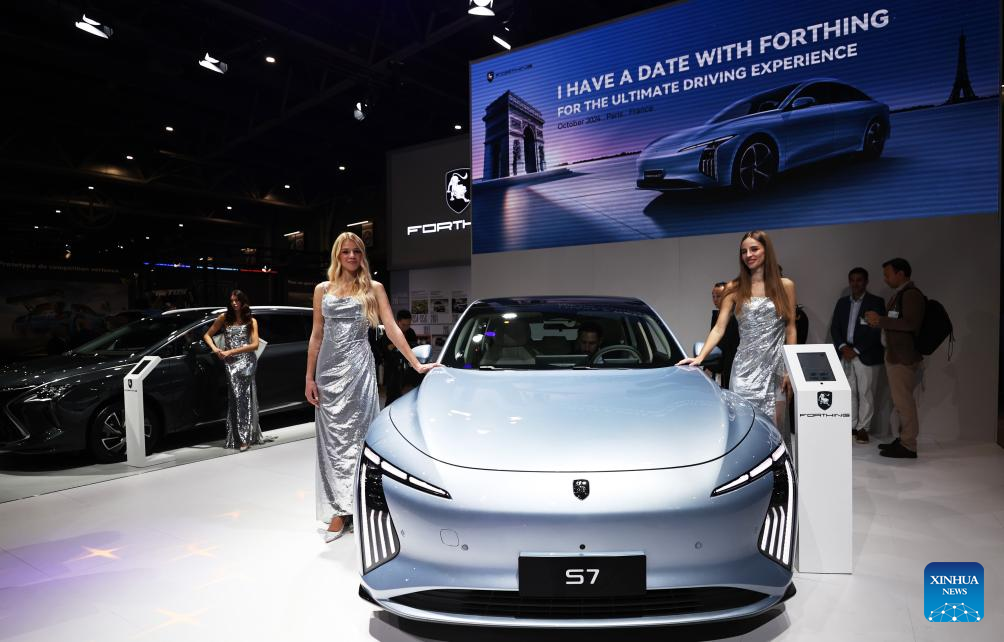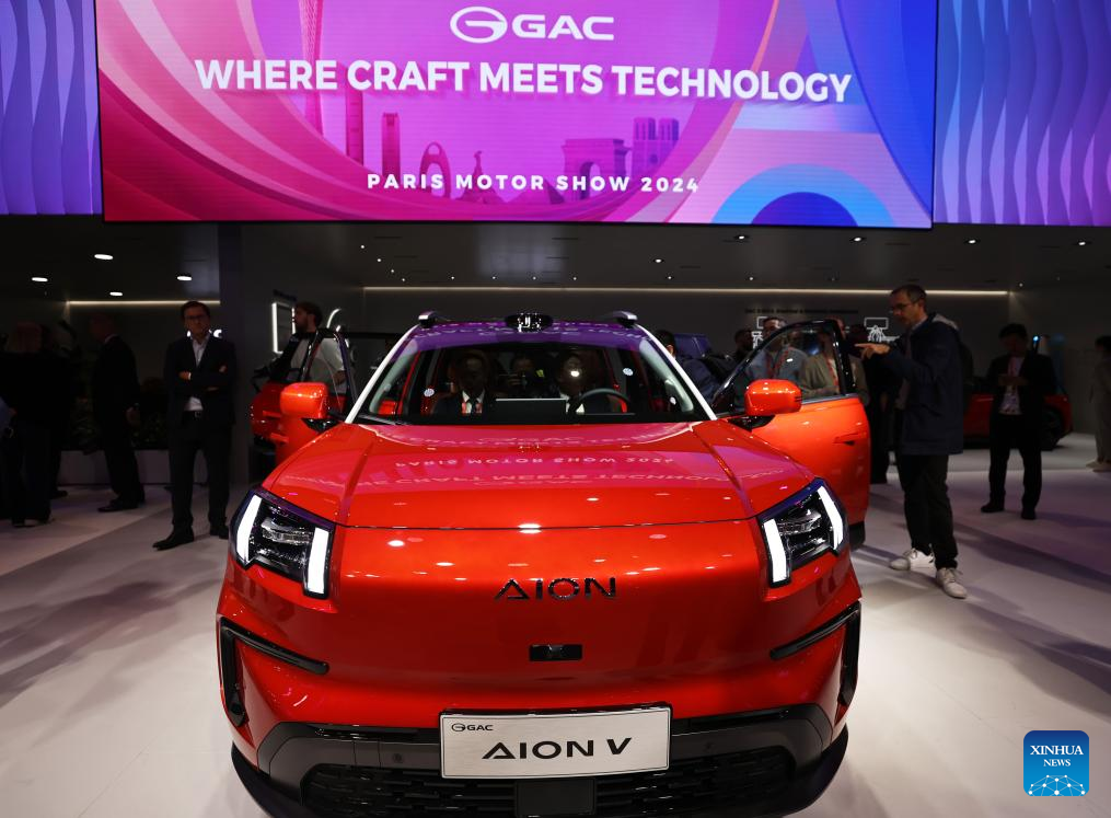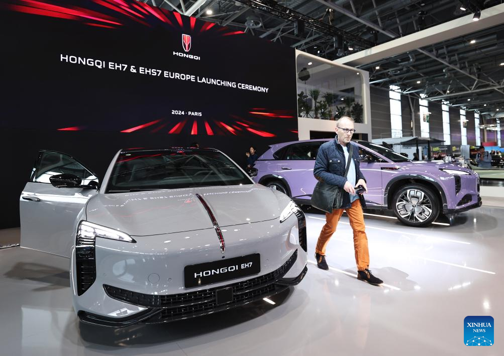 Nine Chinese electric vehicle (EV) manufacturers showcased their latest models at the show as they seek to expand their presence in the French and wider European markets. (Xinhua/Gao Jing)