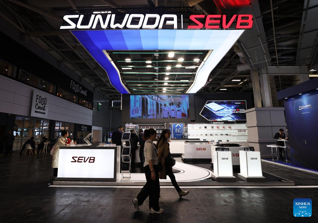 People visit the pavilion of Chinese company Sunwoda at the 2024 Paris Motor Show during the media day in Paris, France, Oct. 14, 2024.