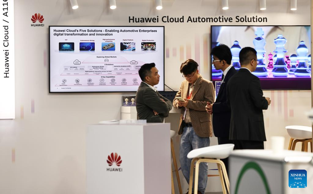People visit the pavilion of Huawei Cloud at the 2024 Paris Motor Show during the media day in Paris, France, Oct. 14, 2024.
